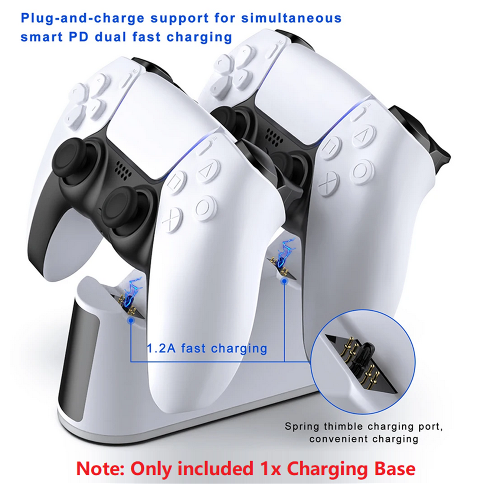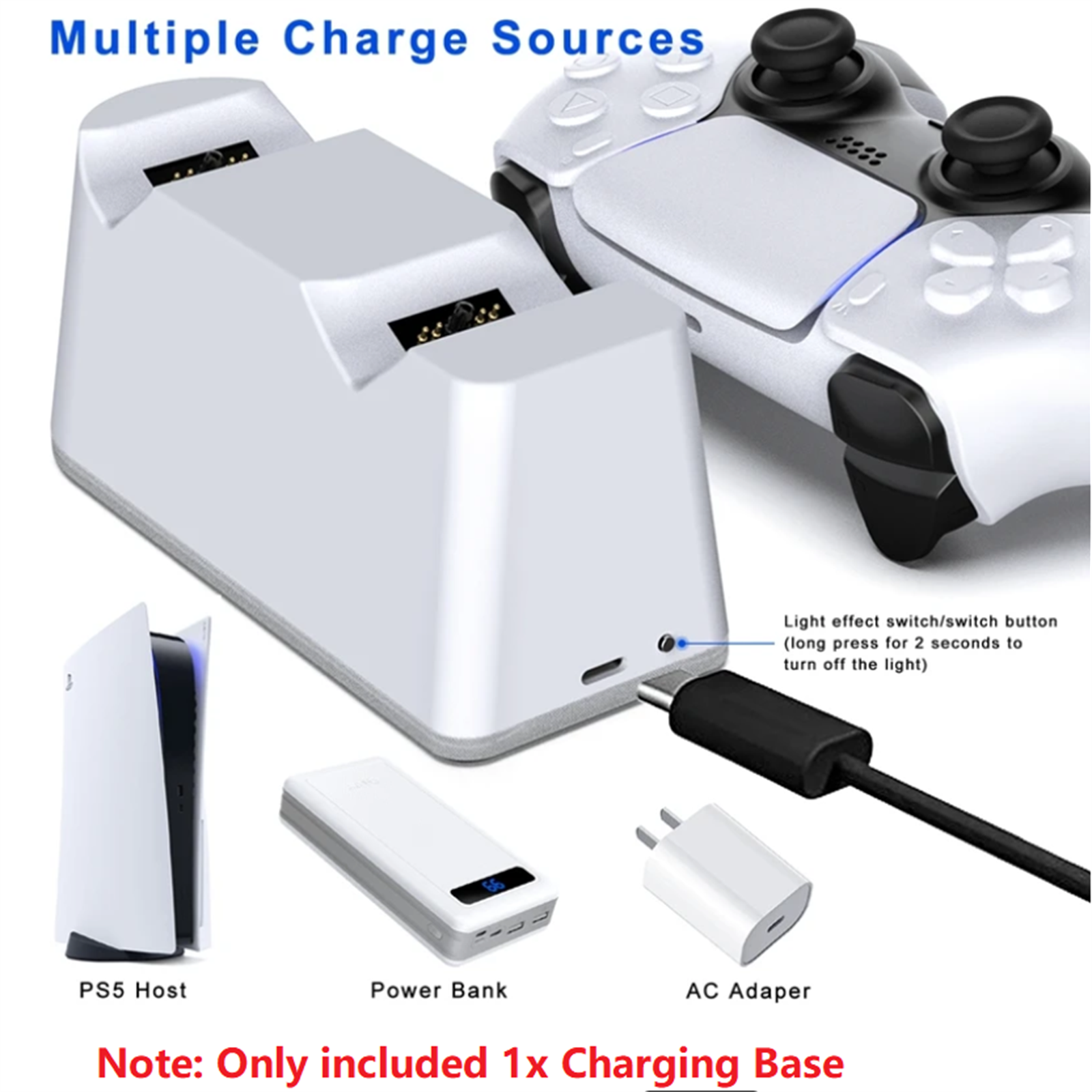 Easy To Use: Non-slip design: Designed for ps5 dual charging station with ease of use in mind. Simply connect the dock to your for PS 5 console and place the controllers directly onto the for PS5 charging dock. offers the for ps5 controller a perfect hold during charging and storage