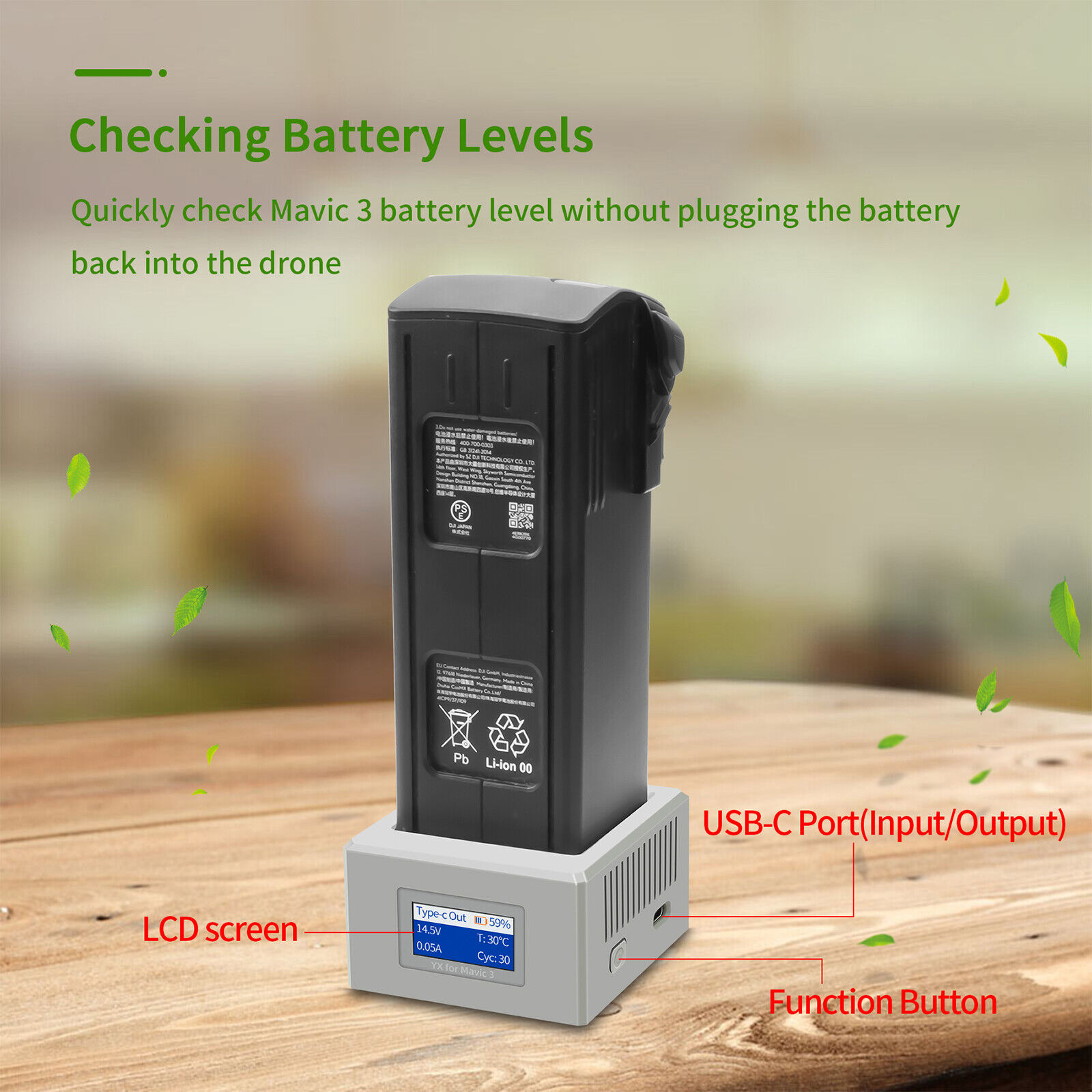 Converts the for MAVIC 3 battery into a rechargeable battery to charge other USB devices discharges the battery). The discharge adjustment range of the battery is 5-80%. The default discharge cutoff power is 15%, and you can set the discharge cutoff power within the discharge range