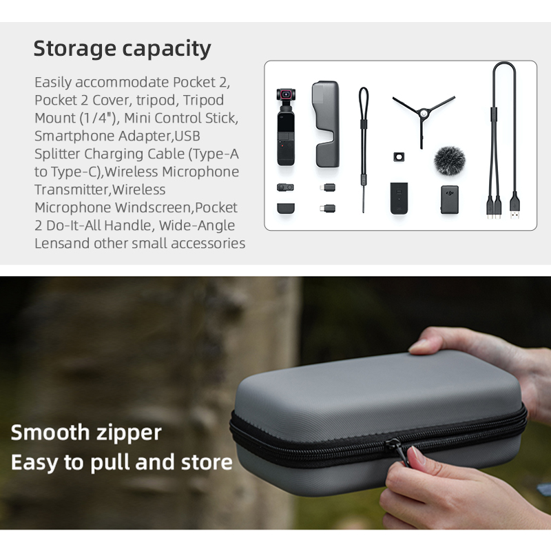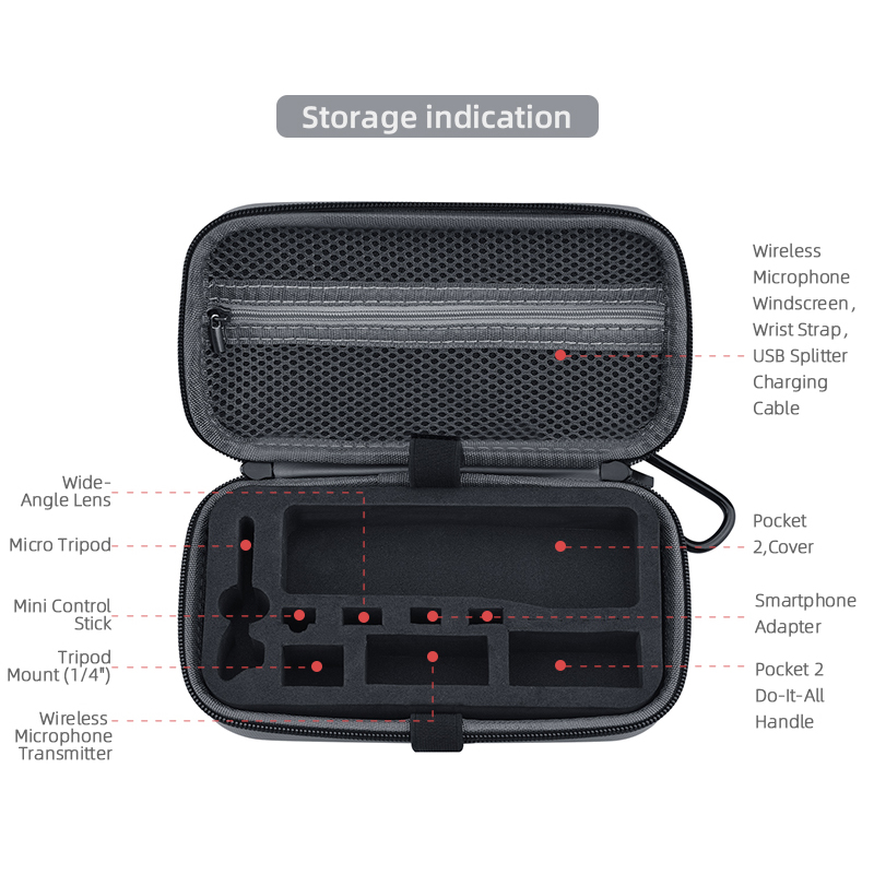 2. Shock absorption and protection of the inner tank, compact and reasonable space design, easily accommodate for Pocket 2 all-round kit accessories.