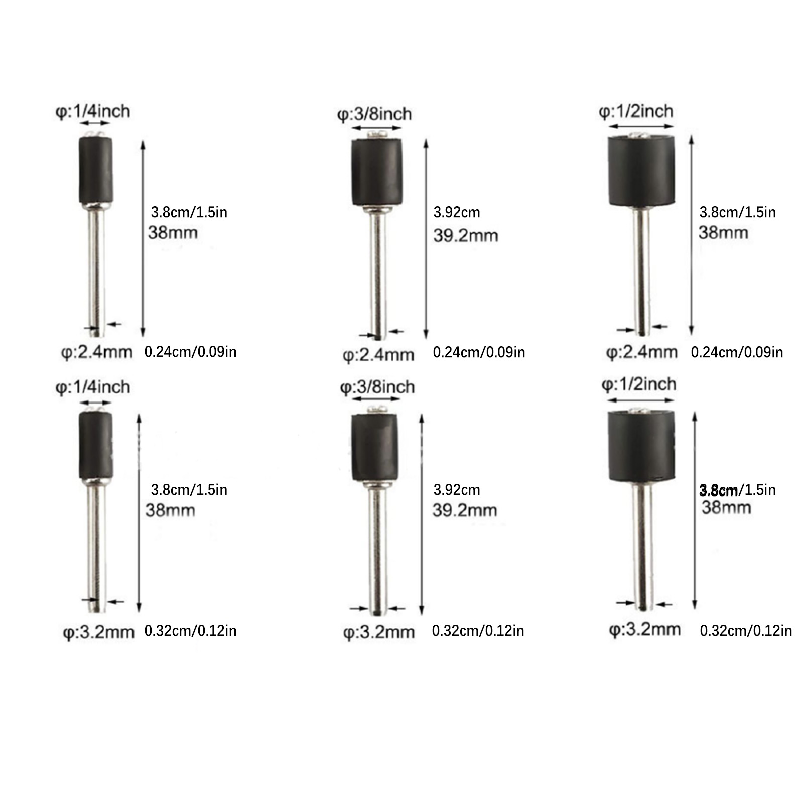 These rotary sanding brands contain 3 diameters (1/2", 3/8" & 1/4").