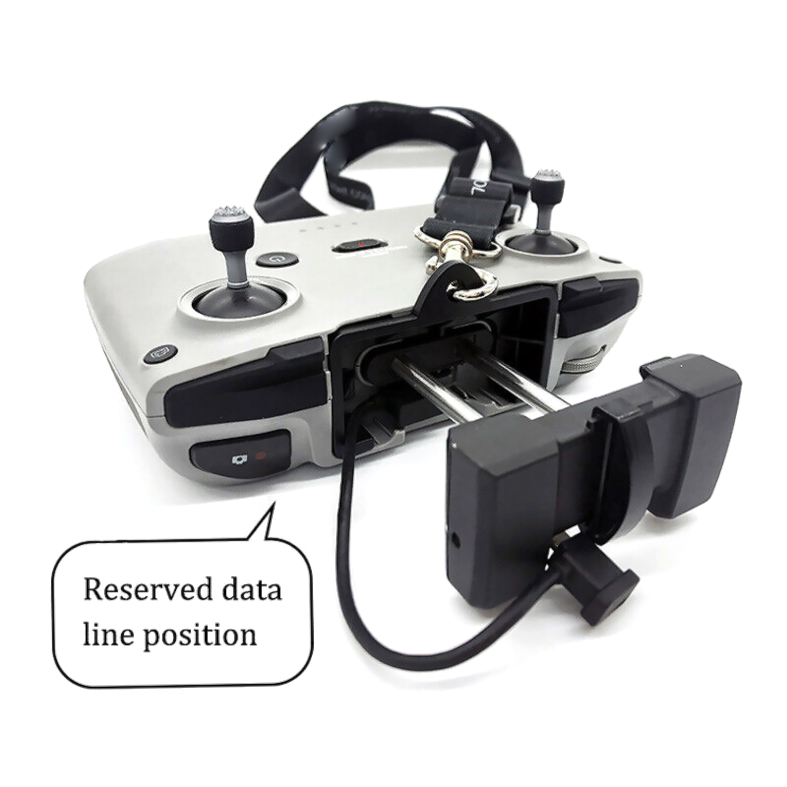 2. The fixed clip can not only fix the lanyard but also fix the data cable connected to the remote control, so that it won't sway around;