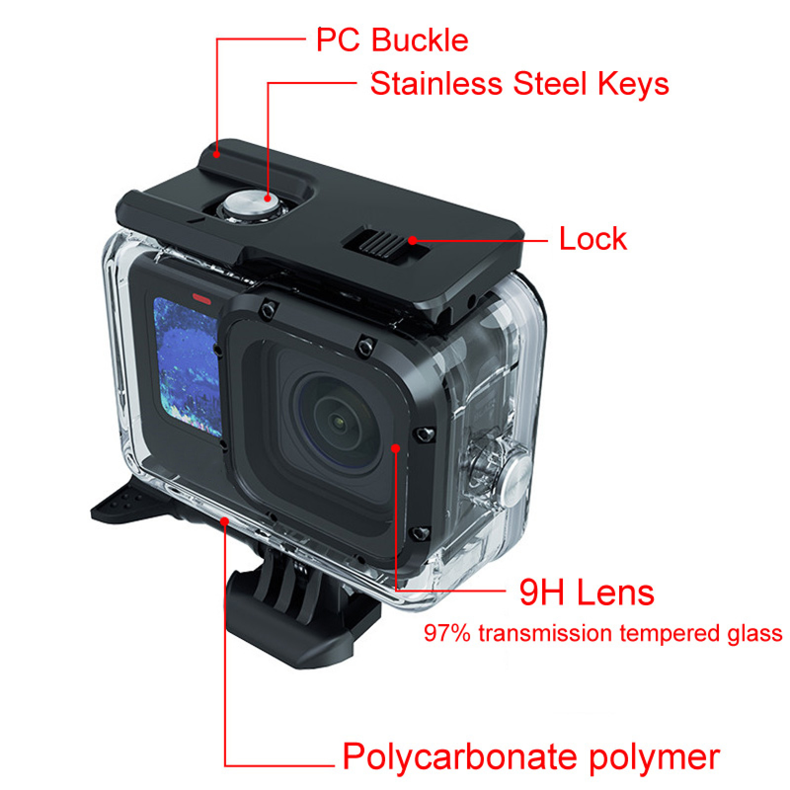 2. With this waterproof housing you can perfectly use the camera 60m underwater; The waterproof shell Anti-surf pressure will not affect your movement and photographic effect;