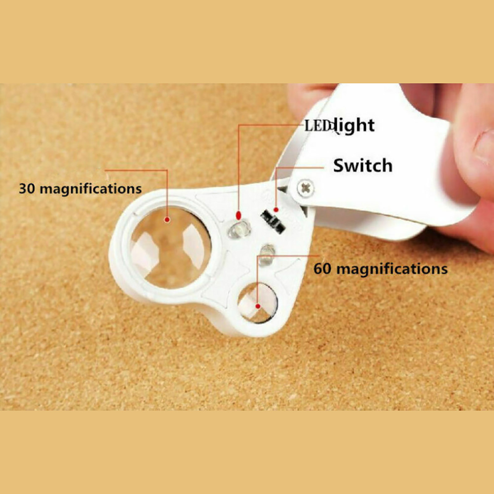 One lens 30 times Magnification, glass diameter at 22mm. Other lens 60 times Magnification, glass diameter at 12mm.