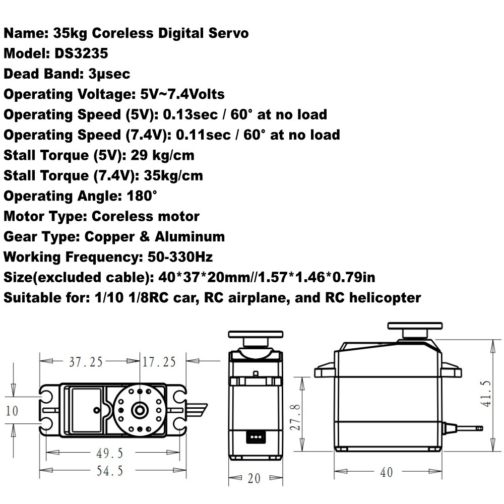 Item: DS3235 35KG Coreless Stainless Steel Gear Waterproof Digital Servo