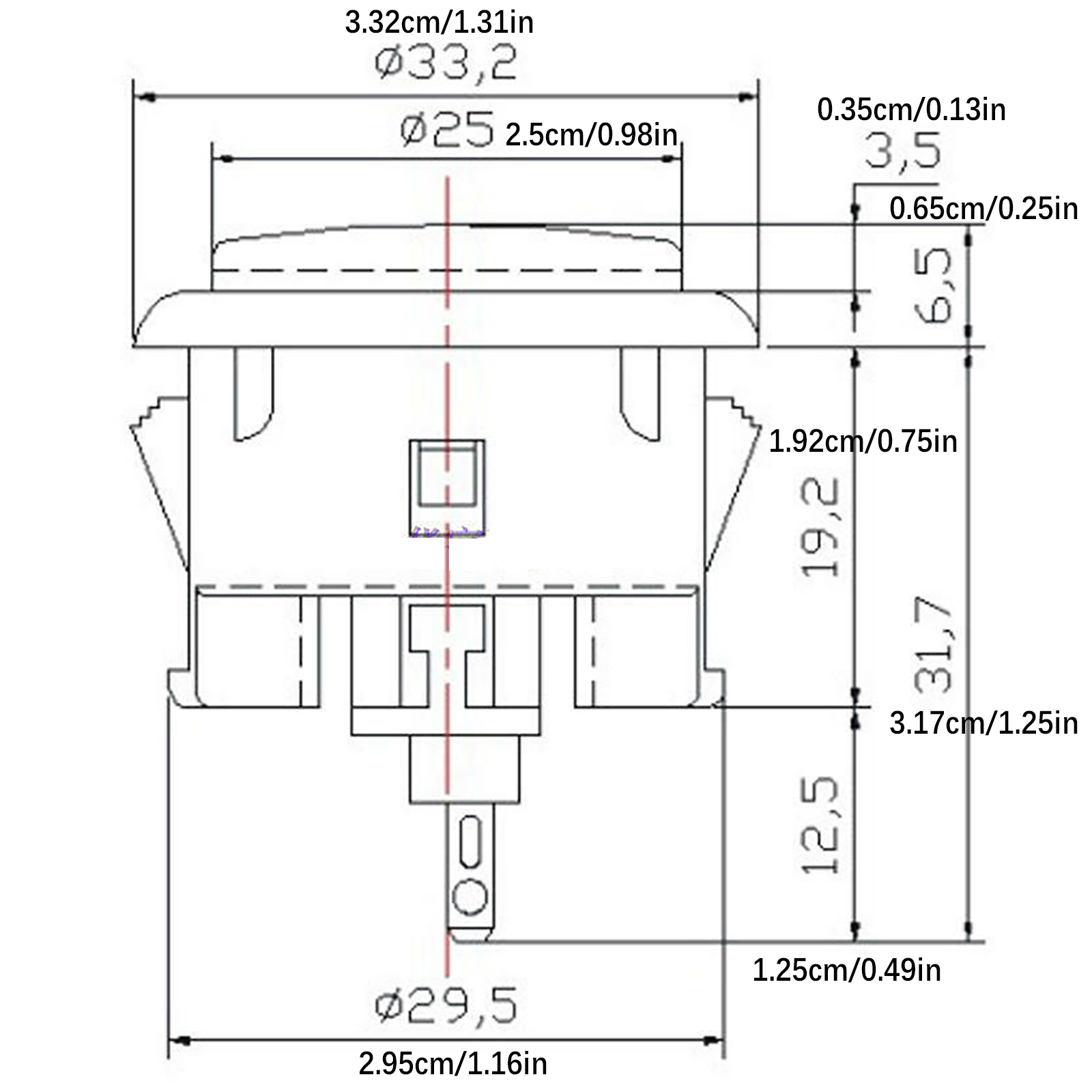 (5) Overall diameter : 33mm.