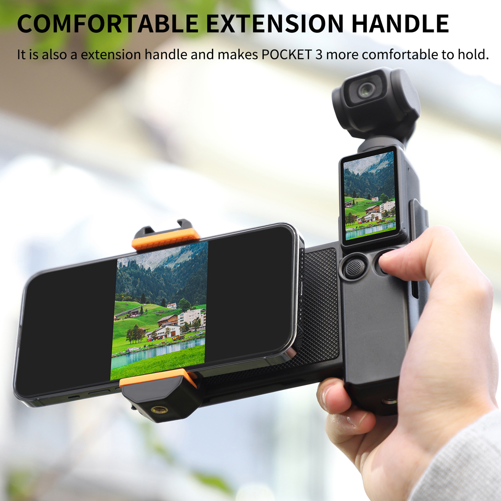 Extended handle, increasing the length of the camera, easy to hold and shoot.