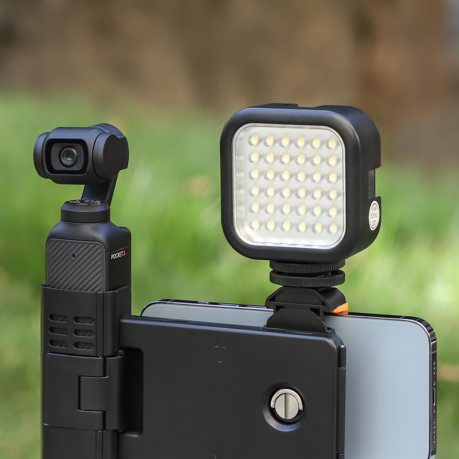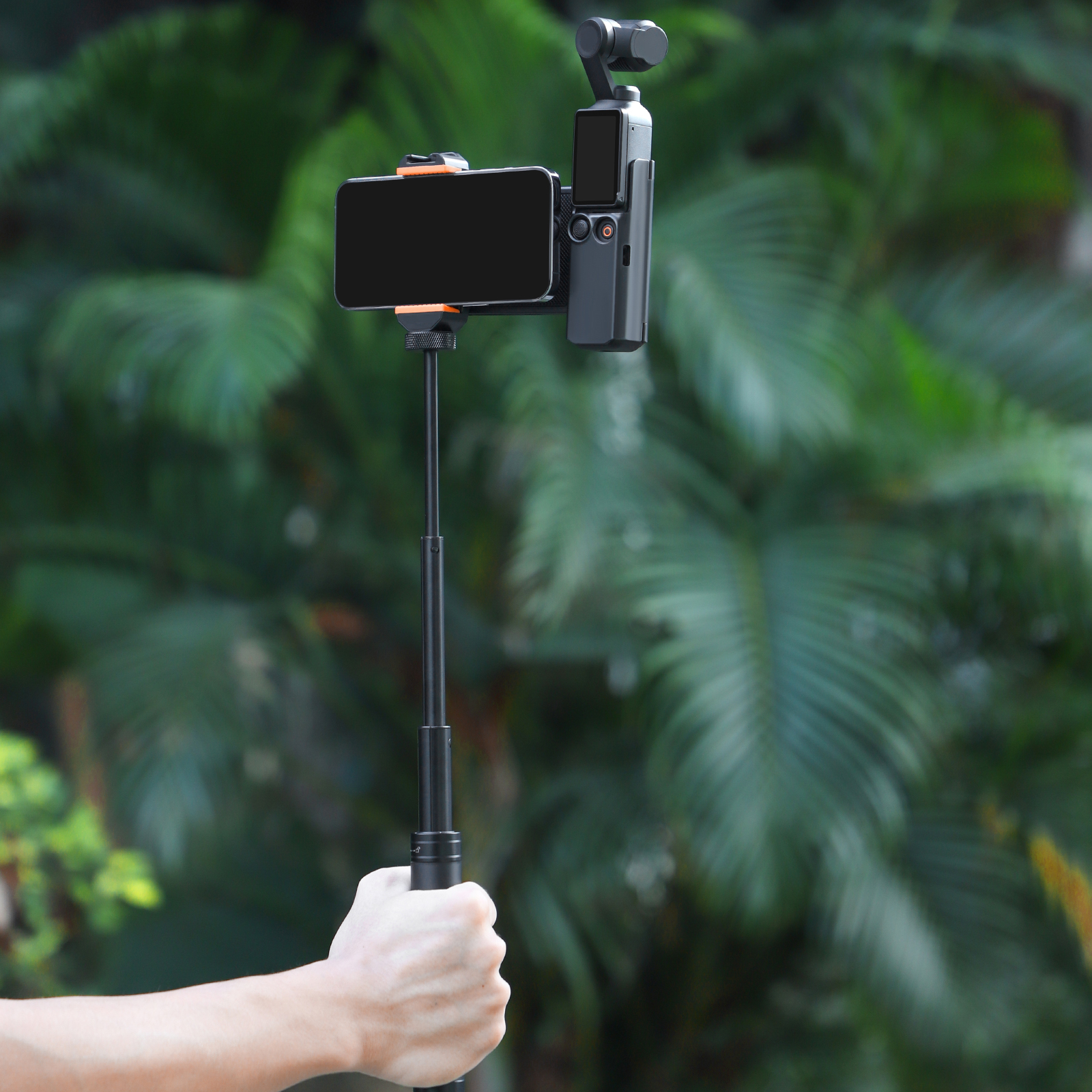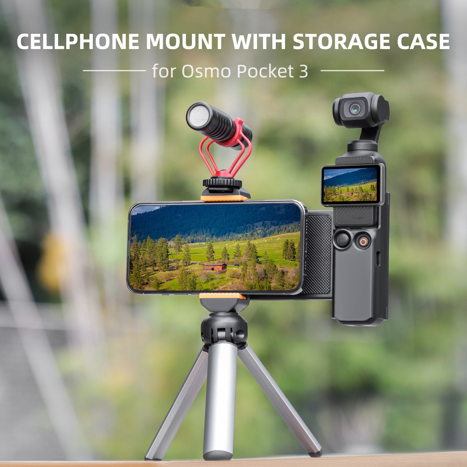 Multi-functional expandable mobile phone holder. It is both a mobile phone expansion stand, but also a for Pocket 3 protective case, extension handle, and can also store filters and memory cards.