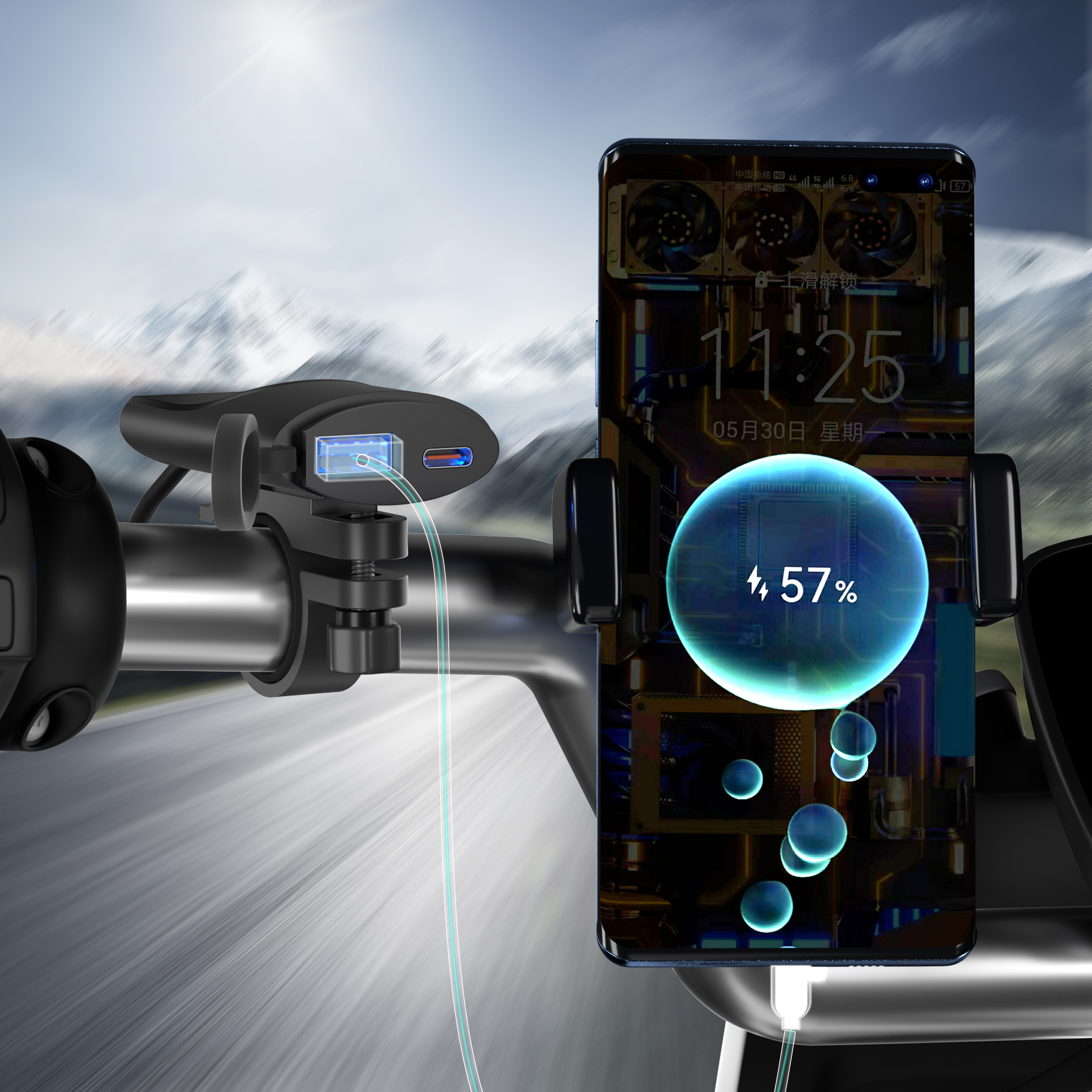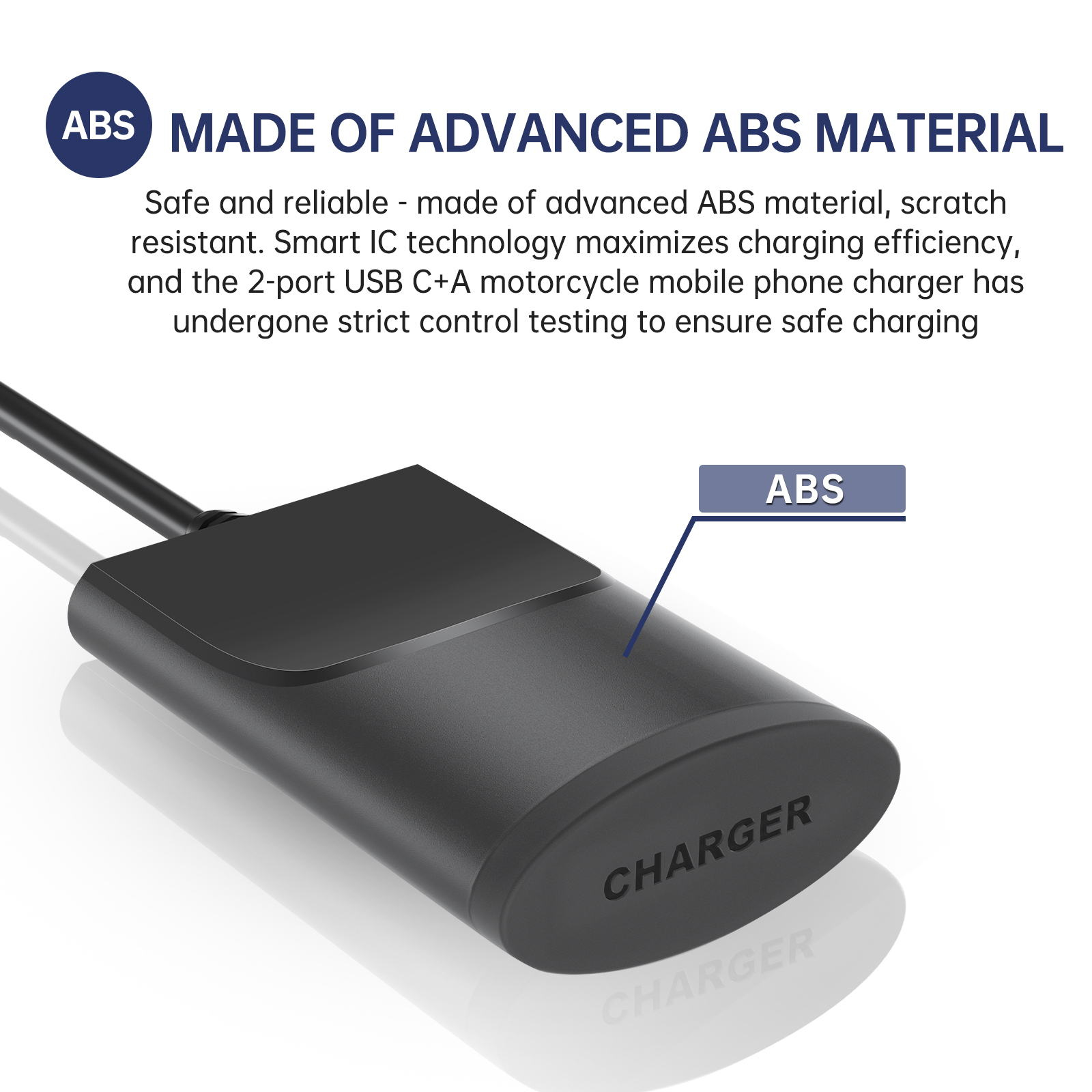 2. Safe and reliable - made of advanced ABS material, anti scratch. Smart IC technology maximizes the charging efficiency. The 2-port USB C+A motorcycle mobile phone charger has passed strict control tests to ensure safe charging,