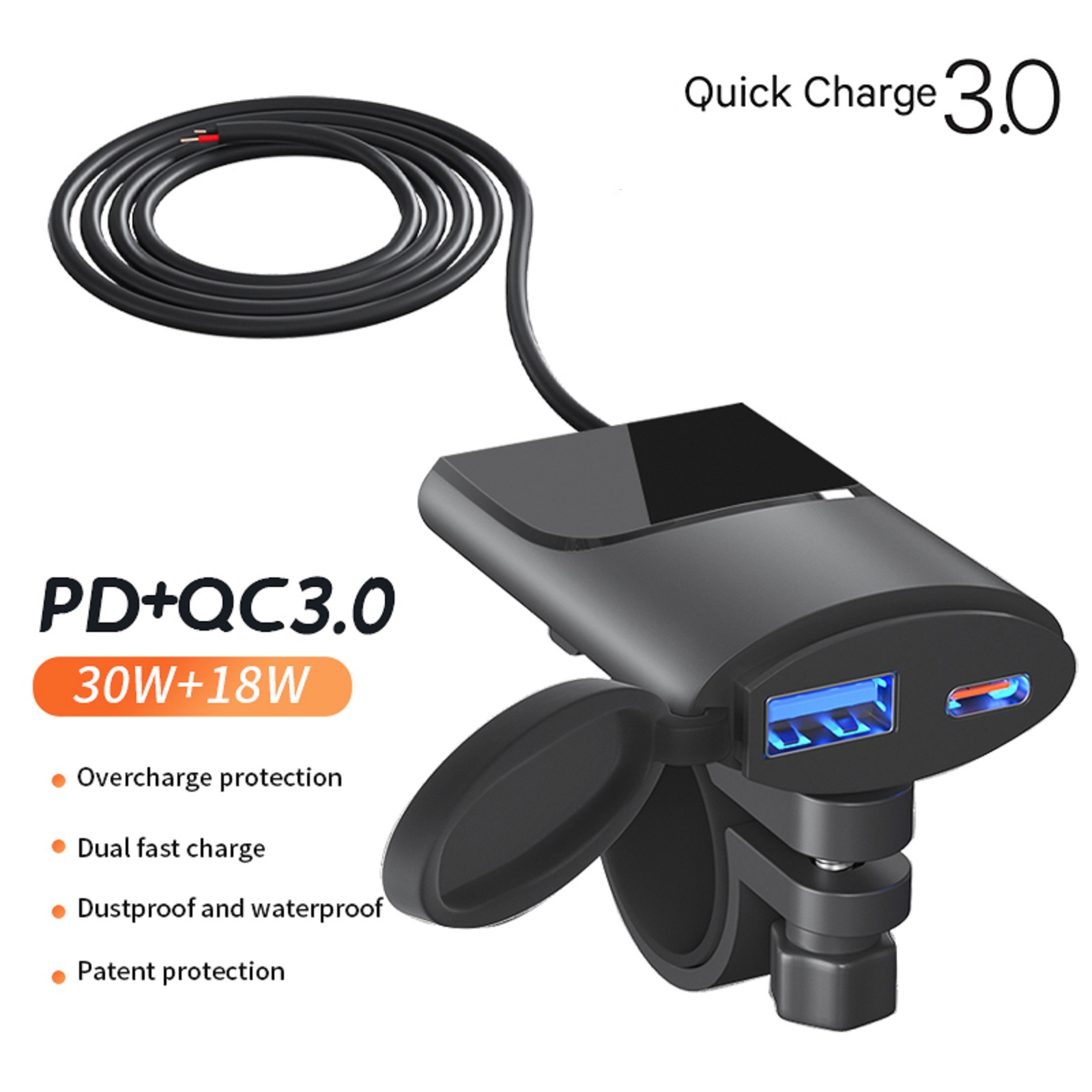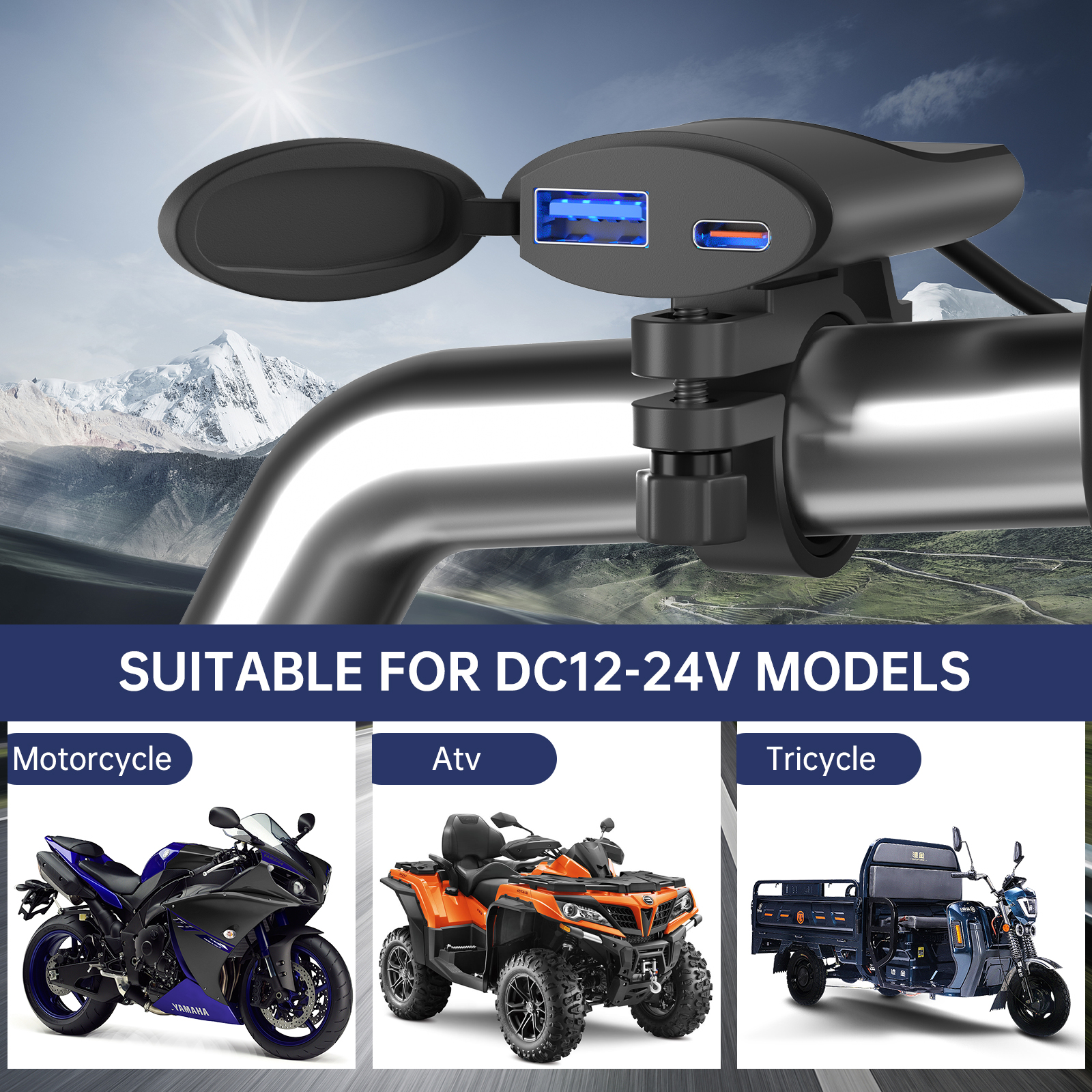 1. Dual Fast Charging Motorcycle A+C Charger - The upgraded motorcycle phone charger comes with 30W USB-C (PD powered) and 18W USB-A dual ports. Supports multiple fast charging specifications and protocols,