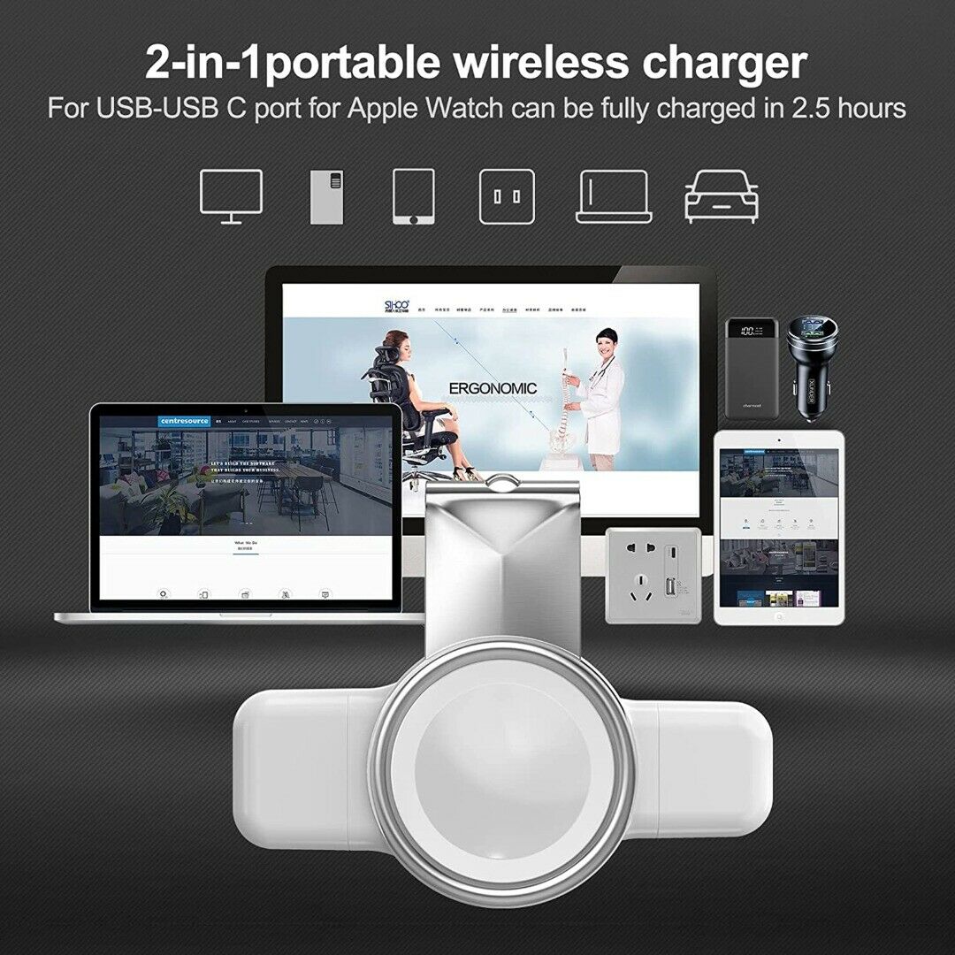Built-in smart chip, dual-interface portable charger provides original charging speed and fast charging function to quickly increase battery power. It only takes 2-2.5 hours to fully charge your watch.