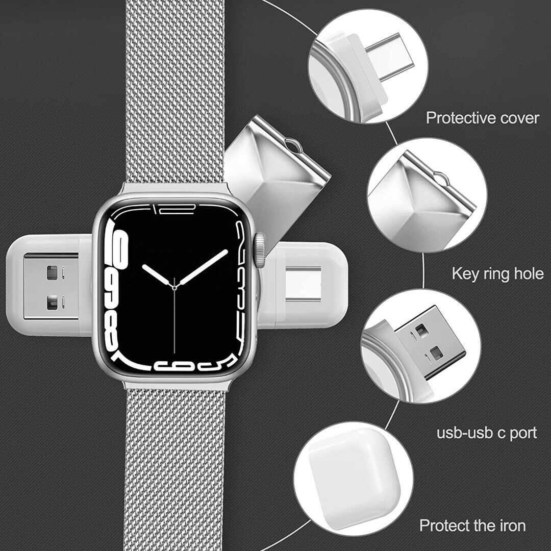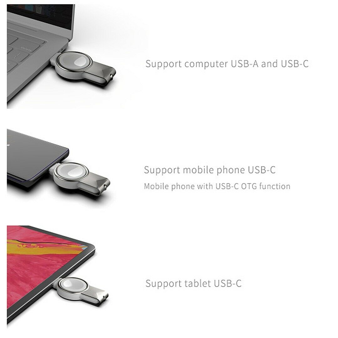 USB and USB-C dual interface portable charger, plug it into the computer's USB- and USB-C ports, sockets, mobile power, wall chargers or any other USB-A and USB-C charging devices, you can change Use multiple devices together. Charge your watch anytime, anywhere.(USB-C=TYPE-C)