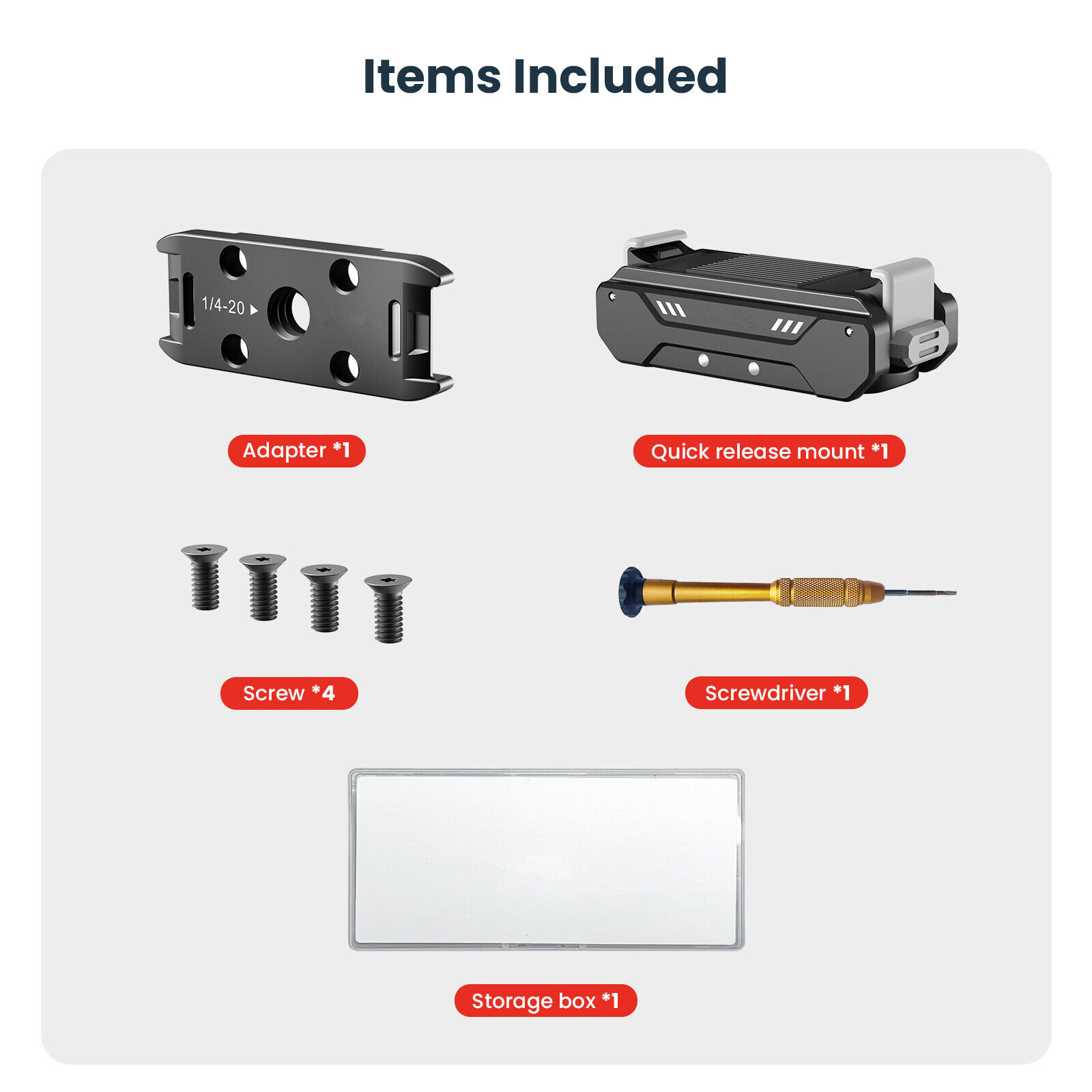 The quick release mount is compatible with a variety of accessories with its magnetic folding fingers and 1/4 screw connection.