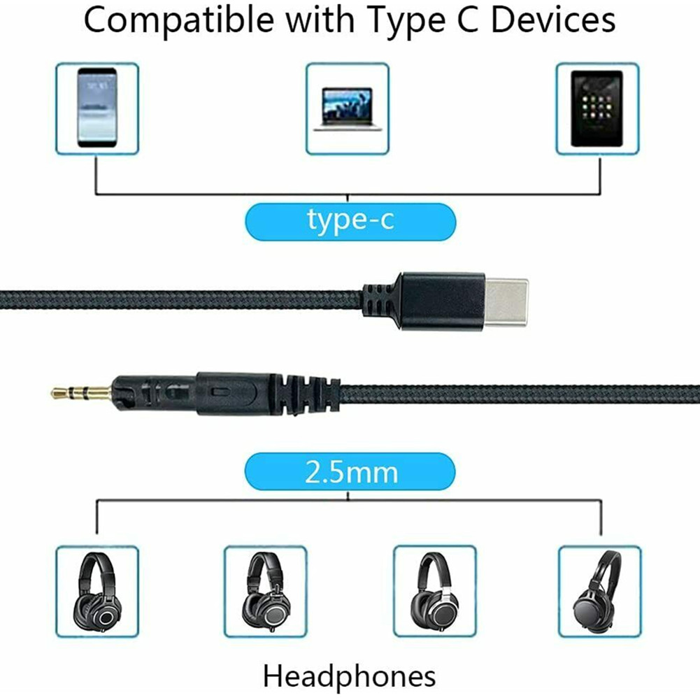 Type-C to 2.5mm male headphones cable