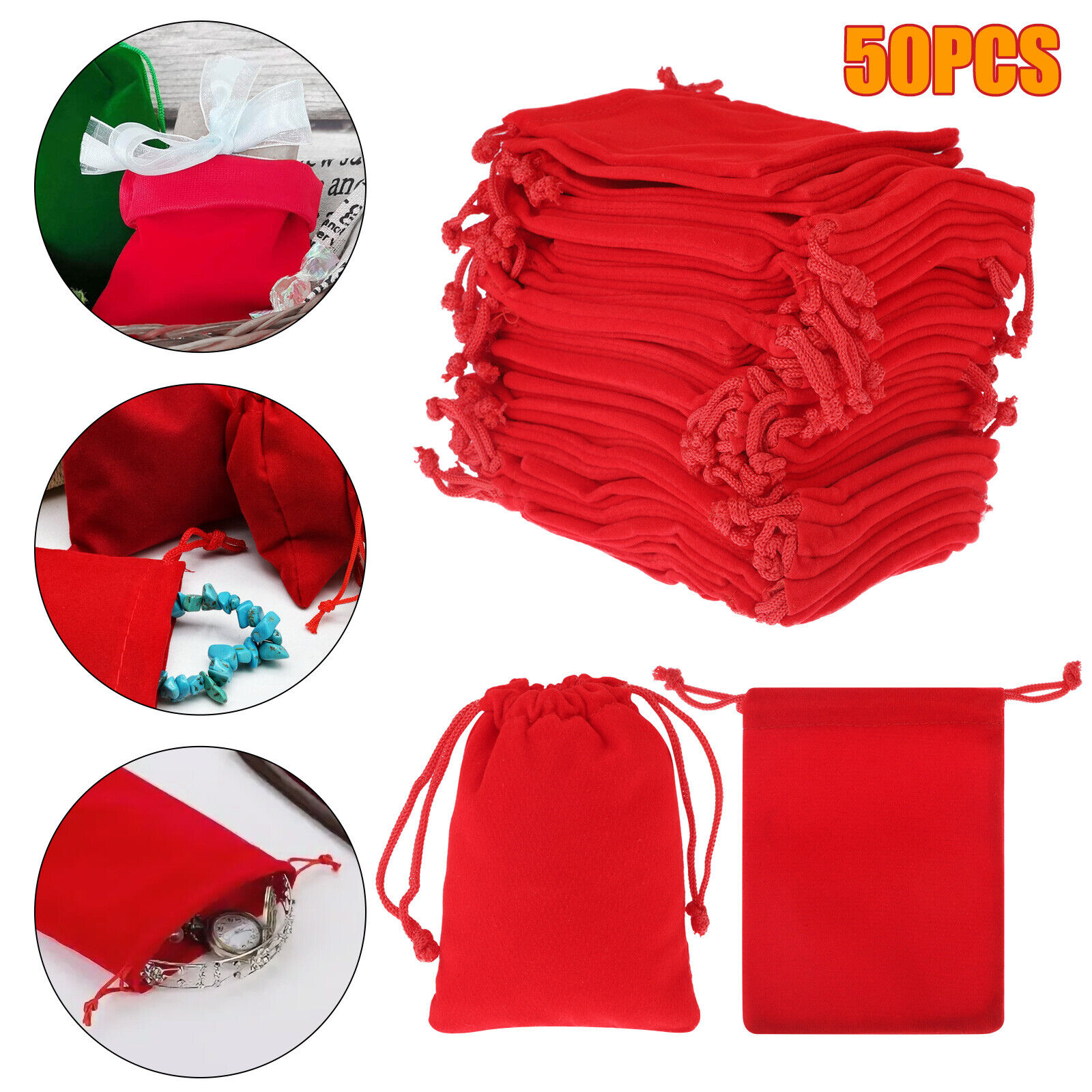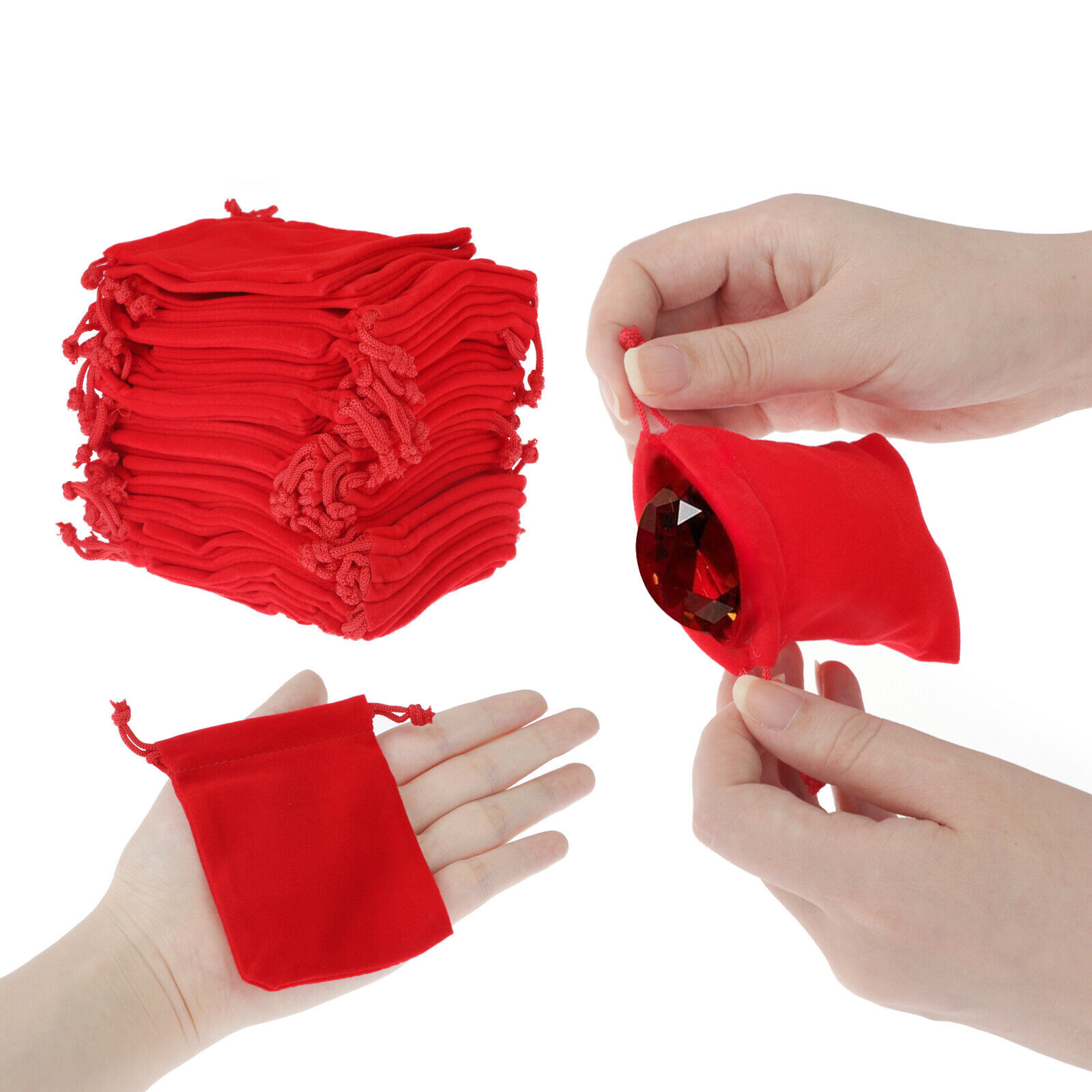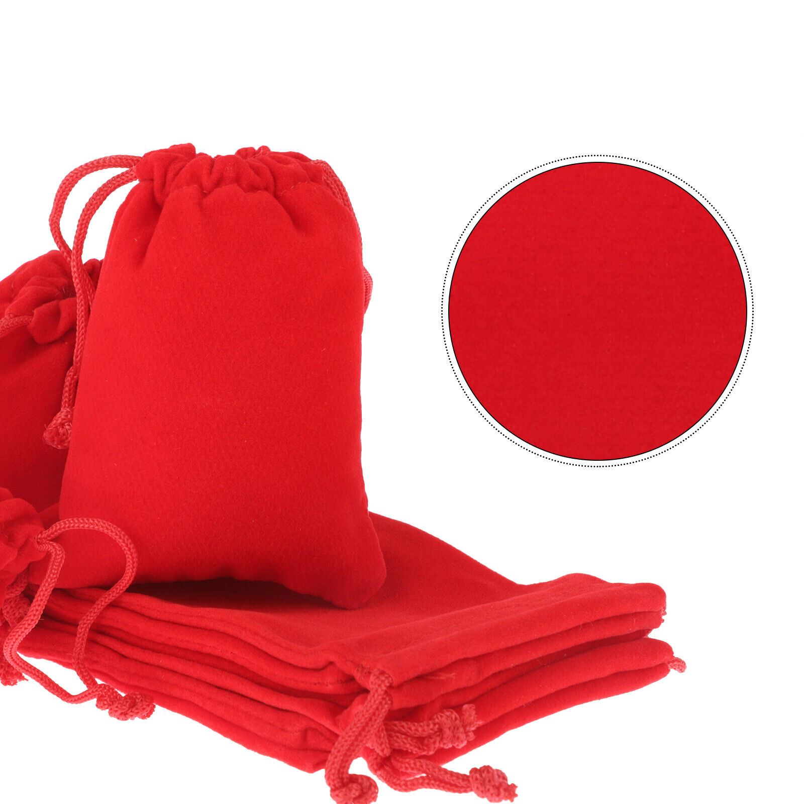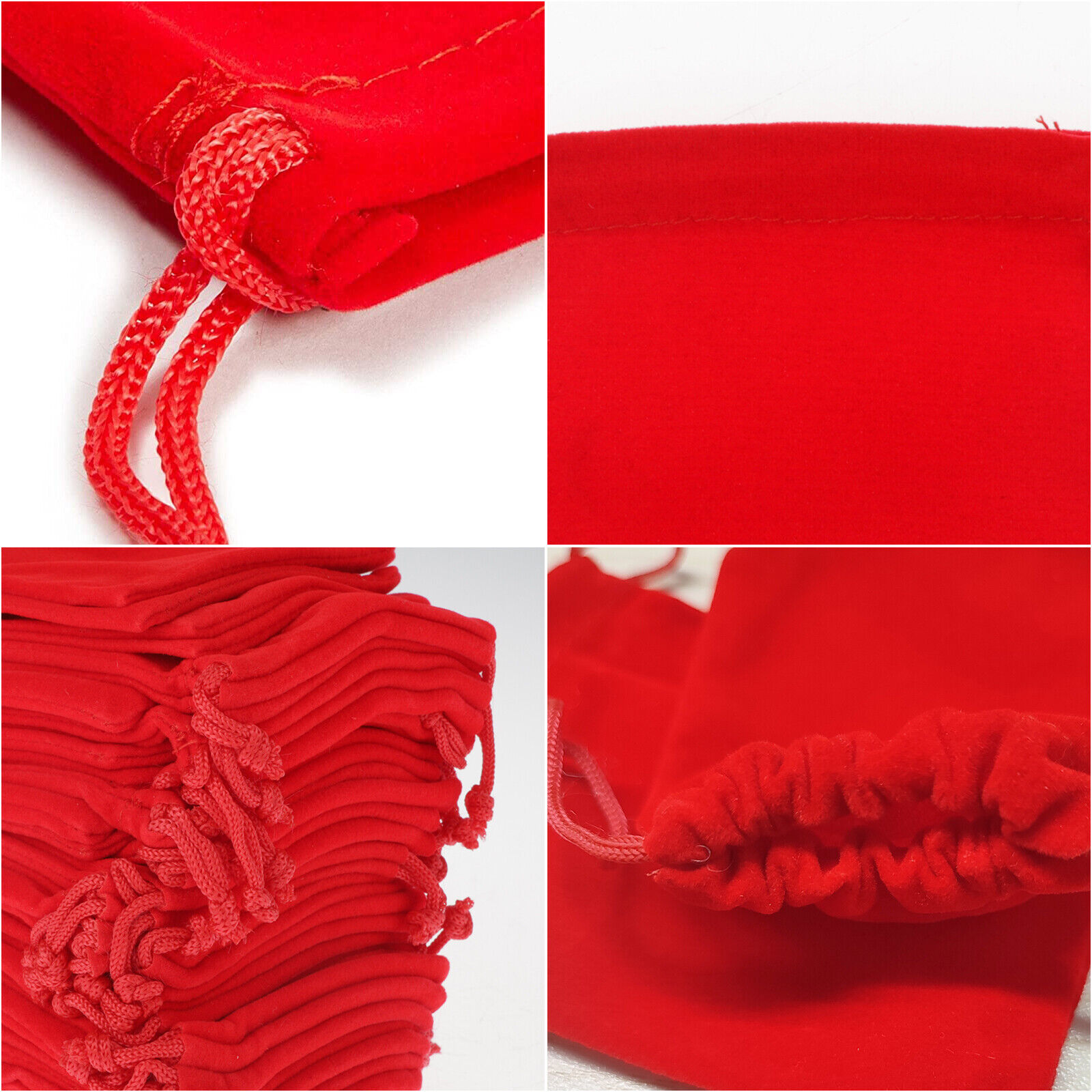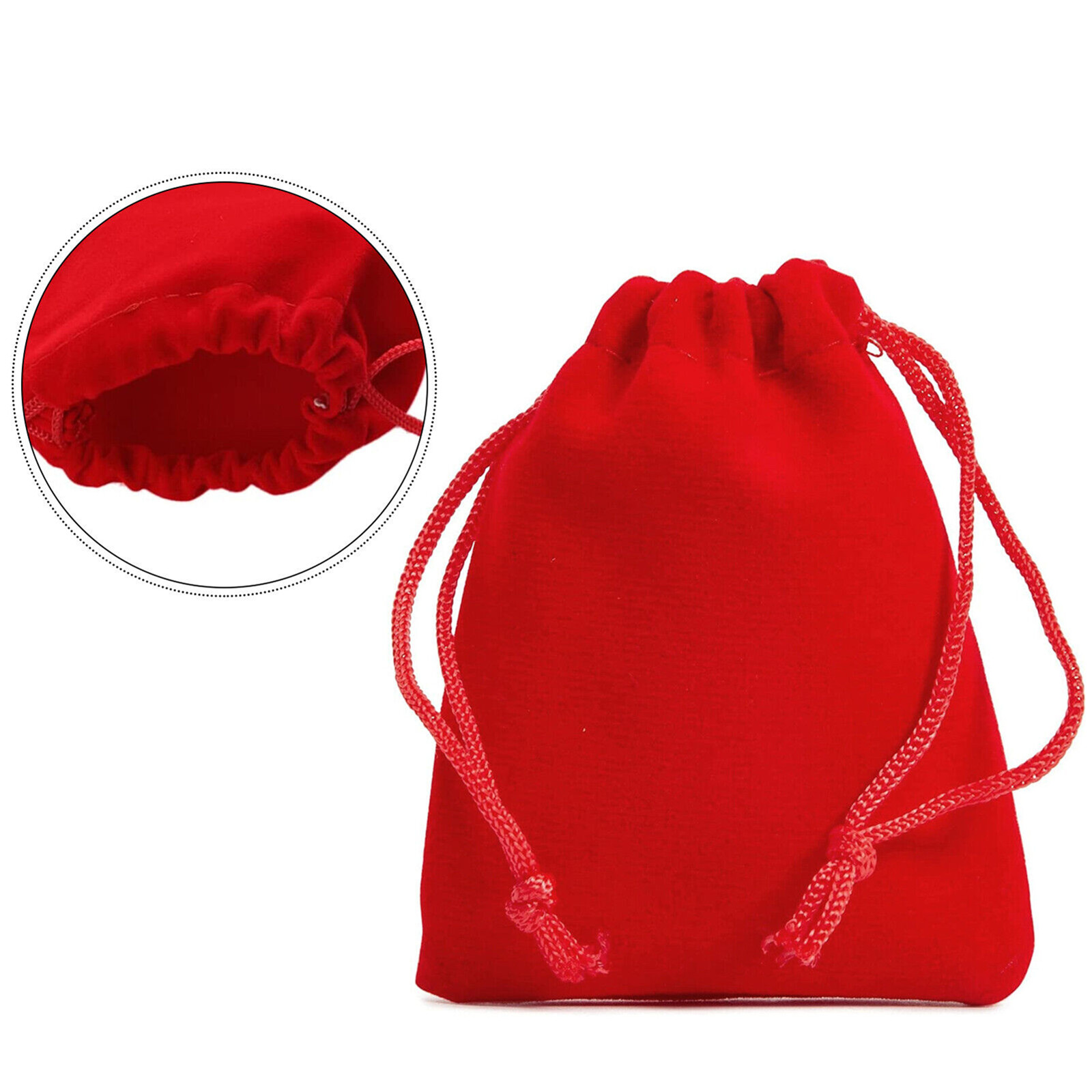 Made of soft velveteen fabric with a braided drawstring to ensure items won't lose their shape when tightened, the red color makes it a very elegant way to gift jewelry and other small items.