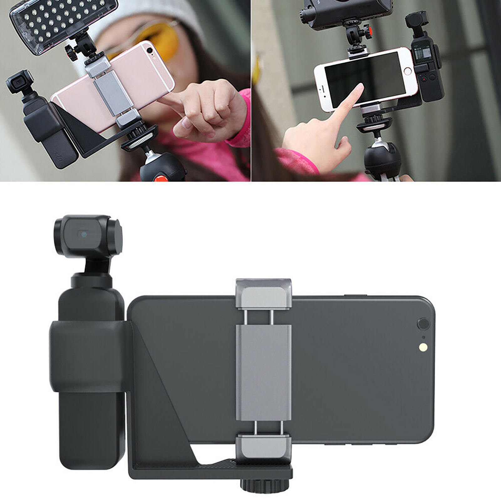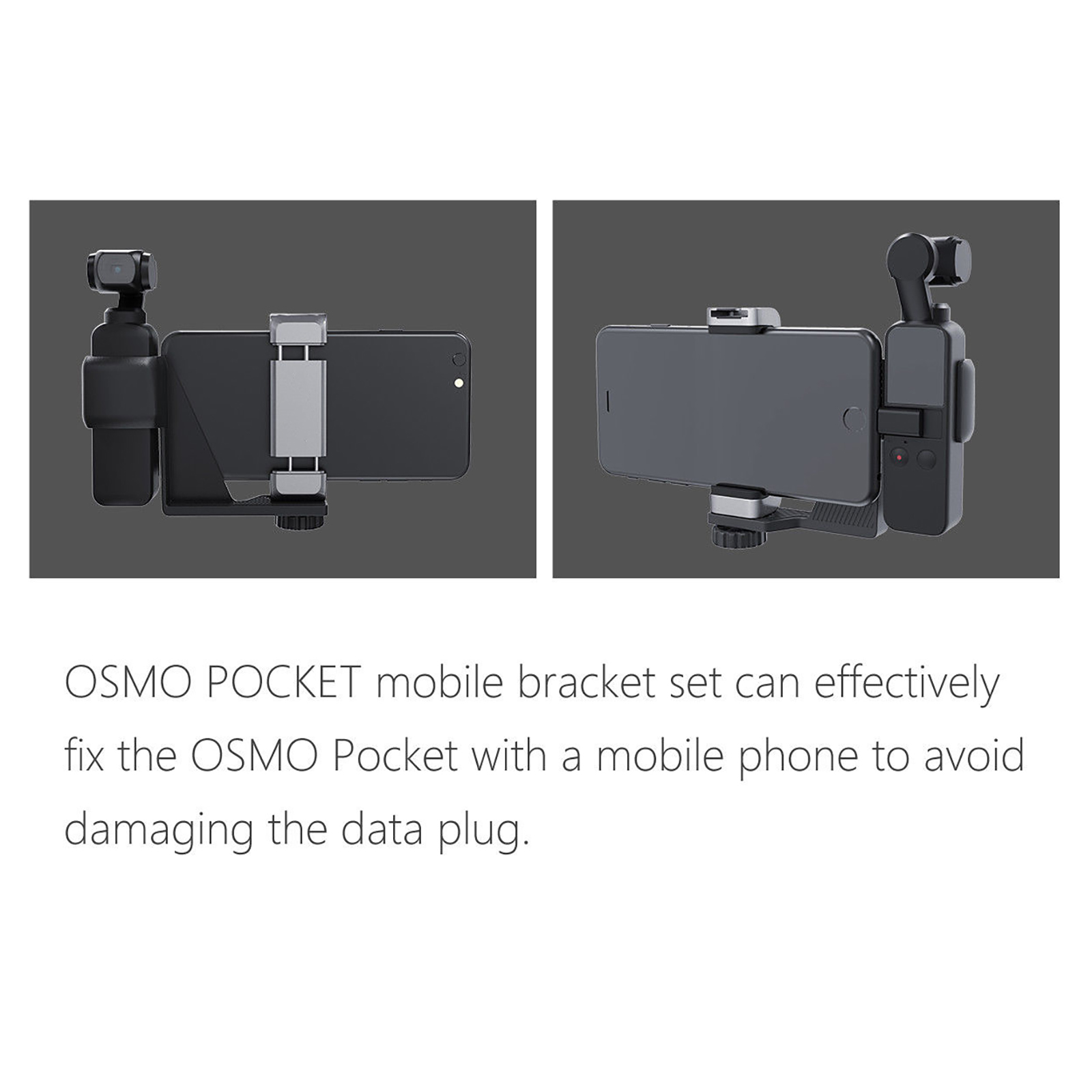 1, OSMO POCKET mobile bracket set can effectively fix the OSMO Pocket with a mobile phone to avoid damaging the damaging the data plug.