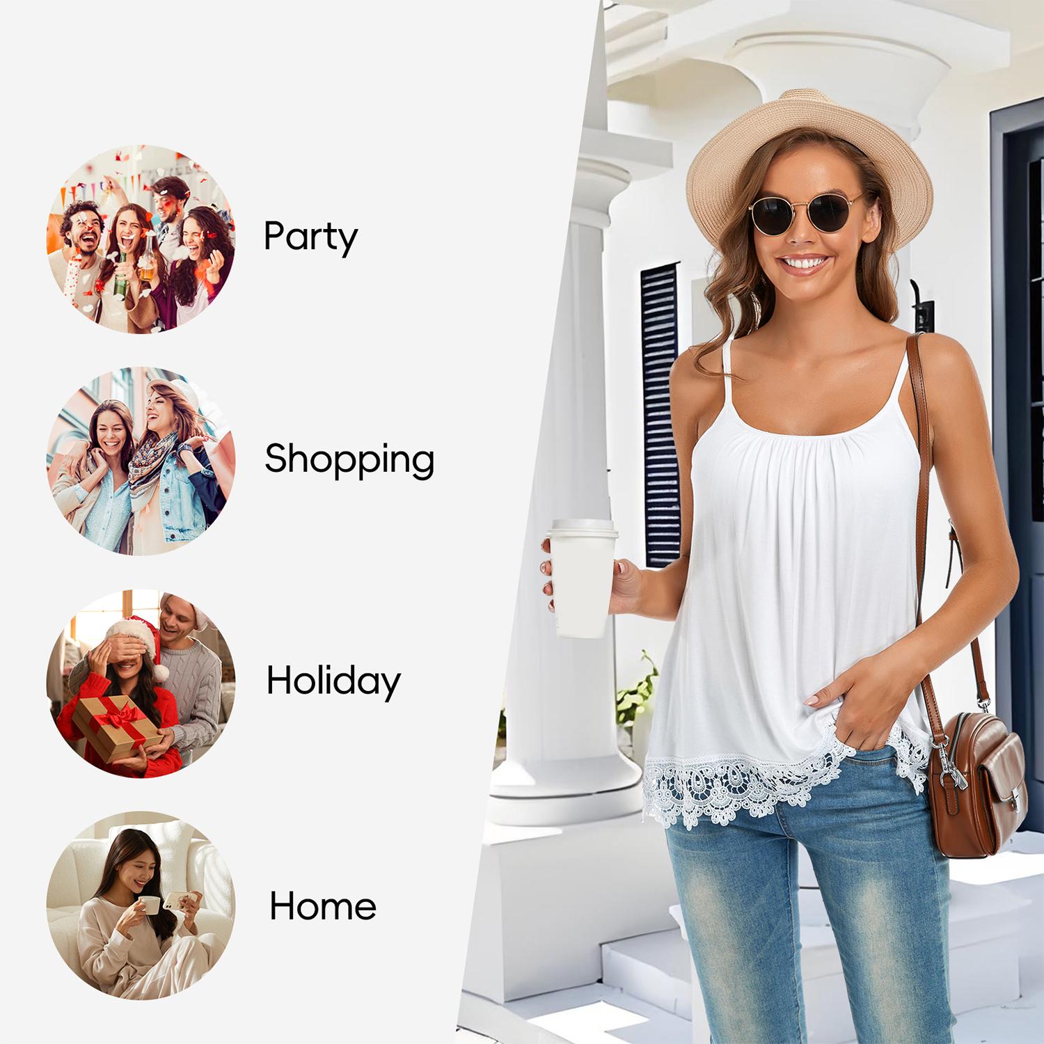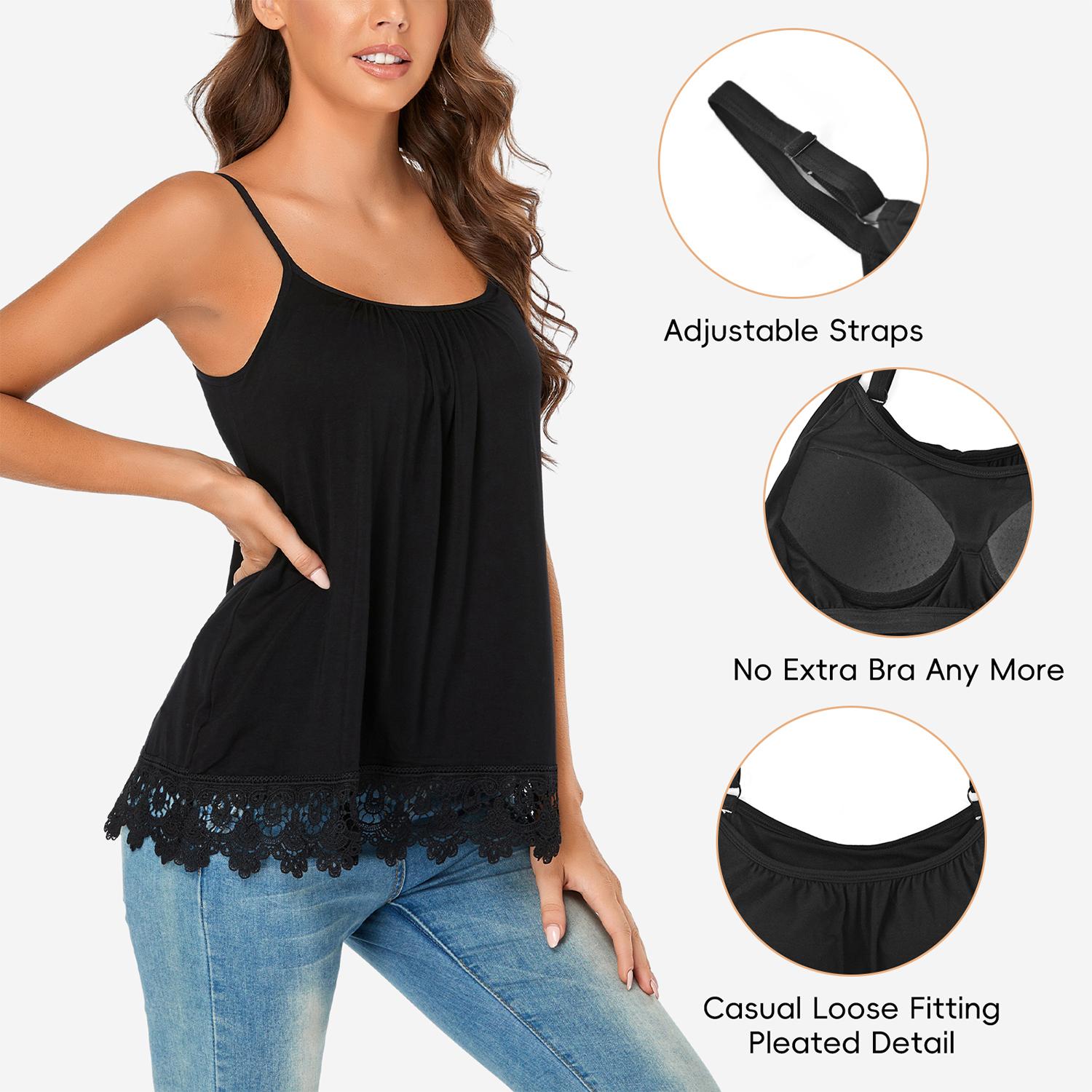 thout being tight, provides slight support and good coverage. The hem is decorated with delicate lace, making your everyday camisole more elegant; the adjustable spaghetti straps allow you to choose the ideal fit and position.