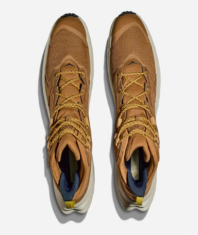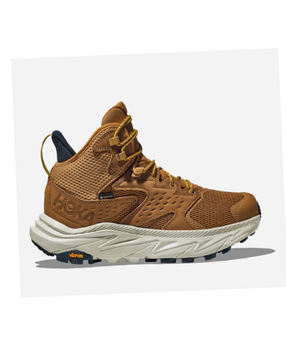 A lightweight, durable, and eco-friendly waterproof hiker, HOKA Anacapa 2 Mid GTX Waterproof Hiking Boots for Men offers reliable comfort and support on the trail. Made of recycled polyester mesh and Leather Working Group gold-rated waterproof nubuck leather with water-repellent treatments, this mid-height hiking boot protects and supports feet and ankles over any hike. Featuring a 71% recycled polyester face fabric, the GORE-TEX waterproof/breathable membranes inside this protective boot keep feet dry and comfortable in wet or dry weather. Built around Hoka's signature high-stack, compression-molded, 30% sugar cane EVA midsoles, the Anacapa 2 Mid GTX delivers a protective, balanced cushion while maintaining a responsive toe-off. The boots' SwallowTail forked heel allows for adjustments on uneven terrain and smoother heel-to-toe transitions. 50% soybean-based sockliners above the midsoles add even more cushioning while helping the Anacapa 2 Mid create a symmetrical cushion bed beneath your feet. Vibram Megagrip rubber outsoles feature deep lugs to power over trails, no matter how rough or loose the trail. Protective rubber toe caps. Achilles heel comfort build. 7mm drop. Average weight: 18 oz. Awarded the American Podiatric Medical Association (APMA) Seal of Acceptance.