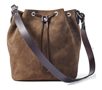Filson Rugged Suede Leather Cross Body Bucket Bag Purse Made in USA