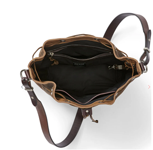Filson Rugged Suede Leather Cross Body Bucket Bag Dark Tobacco Purse Made in USA