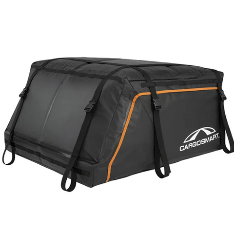 Achieve greater storage space for your long-haul adventures with this CargoSmart Storm-Proof Cargo Bag. Water-jet tested and IPX5 compliant, this roof top cargo bag solution has a durable heavy-duty rainproof outer material and urethane coated zipper to keep your contents dry. Its aerodynamic shape makes it perfect for weekend road trips and features easy-access loading from three sides.