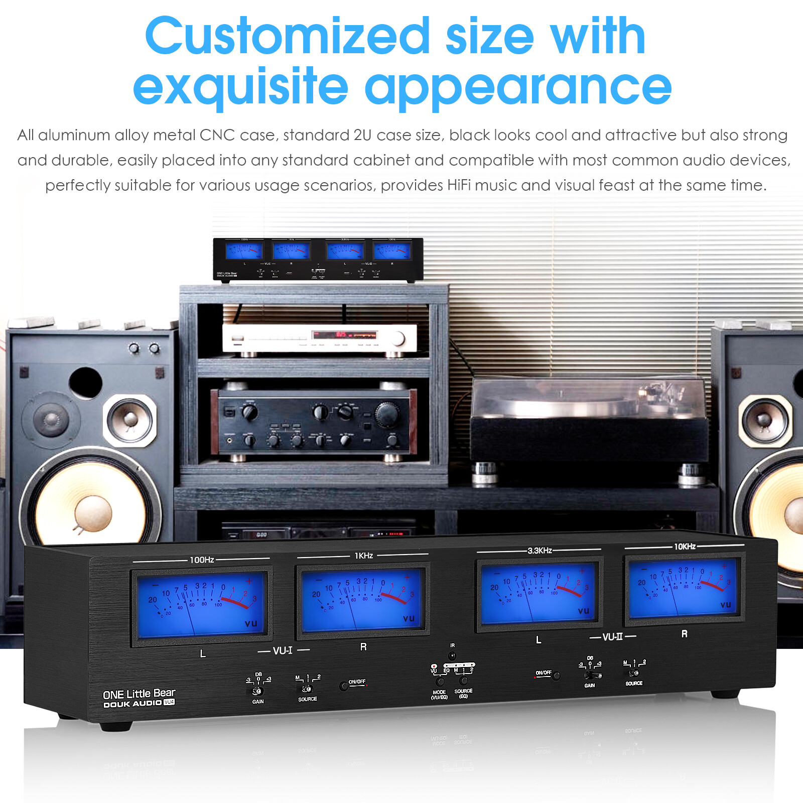 Customized size with exquisite appearance: all aluminum alloy metal CNC case, standard 2U case size, black looks cool and attractive but also strong and durable, easily placed into any standard cabinet and compatible with most common audio devices, perfectly suitable for various usage scenarios, provides HiFi music and visual feast at the same time.