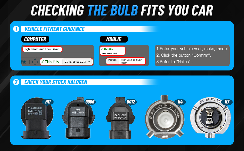3. If you are unsure your bulb type, please do remember send message to tell us your car make, model, year and other information which is helpful to check bulb type. for example: