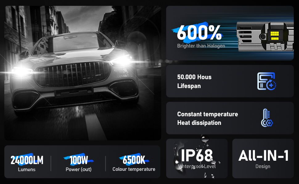 Ultra-Bright Dominance: 700% brighter than dying halogens, 600% over bargain LEDs.Ditch the Dim, yellowish halogen beams that strain eyes and sabotage night - trails.