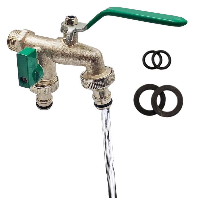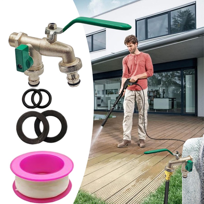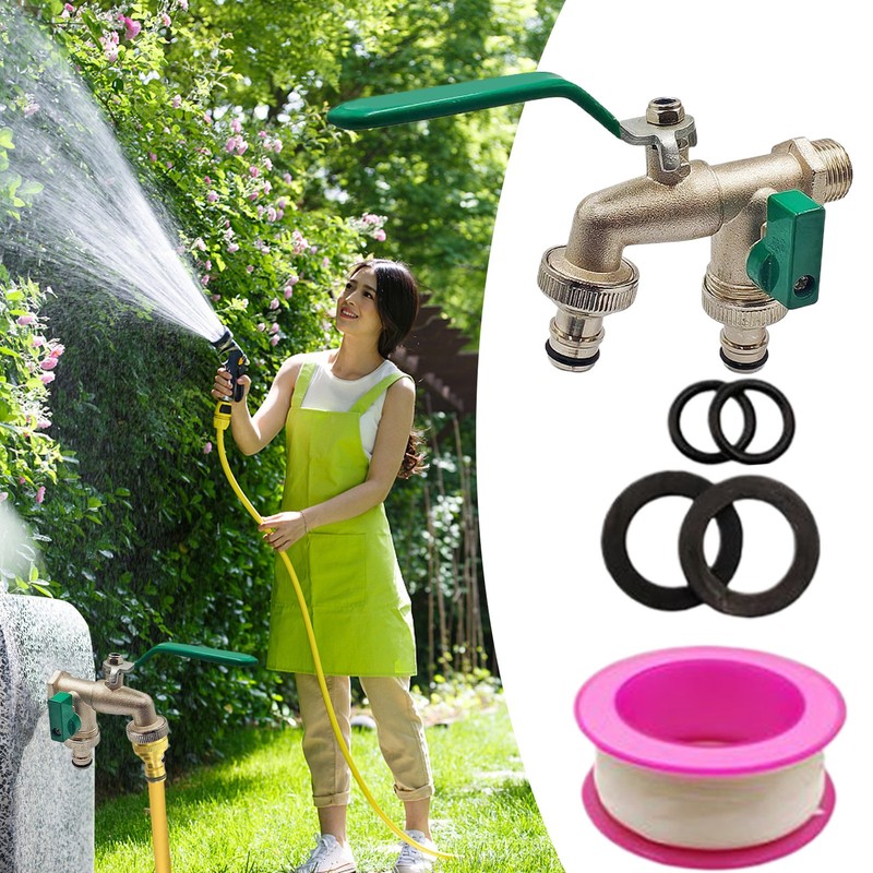 Flexible Outdoor Solution: Delivers double-nozzle convenience for multiple hoses supporting both gardening and car washing tasks with straightforward plug-and-play installation for immediate use