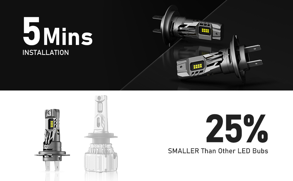 【No Adapter Required, 5-Min Plug and Play】---No external driver, no additional adapter required, while other led headlight bulbs need. Do not need to spend a lot of time as well as effort to replace the halogen bulbs, though you are not experienced. Truly plug and play, directly sit on your socket without any modification.
