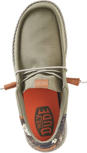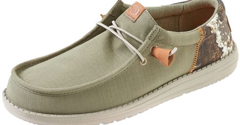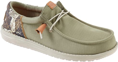 Incognito in the back, comfy in the front! HEYDUDE Wally Funk TrueTimber Casual Shoes for Men are a collaboration between HEYDUDE and Bass Pro Shops. The ripstop uppers have iconic TrueTimber print accents on the backs. The rest of the shoes are all HEYDUDE comfort, from the cushioned ankles to the elastic laces with knot sleeves that make putting these shoes on and taking them off a breeze. The lightweight, flexible outsoles give you a grip on surfaces without sacrificing comfort. These HEYDUDE shoes have moccasin toes that create a classically inspired appearance for these modern slip-ons. I
