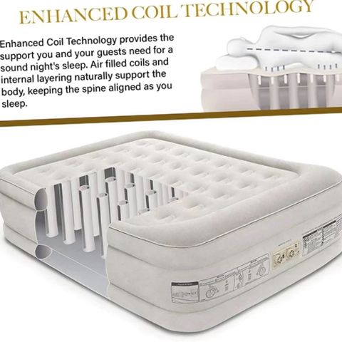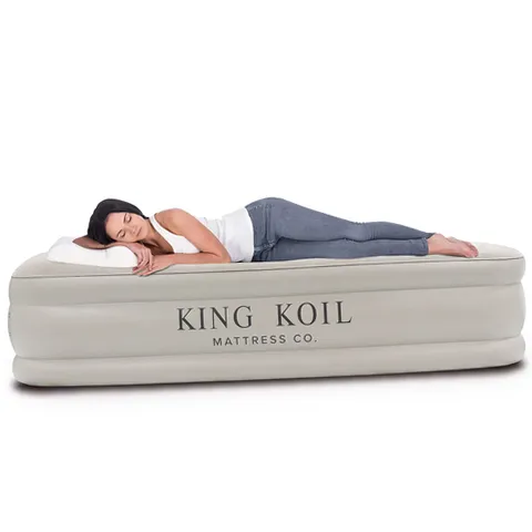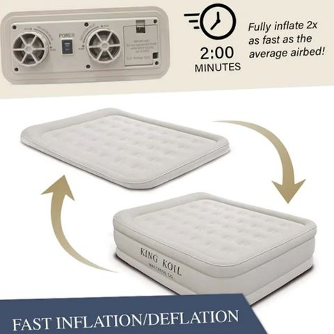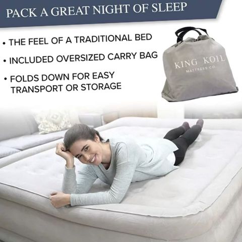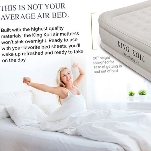 King Koil 29190 Luxury 20in Queen Size Air Mattress with Built-in Pump, Plush Top, Home Camping Guests Inflatable Airbed, Double High Blow Up Mattress