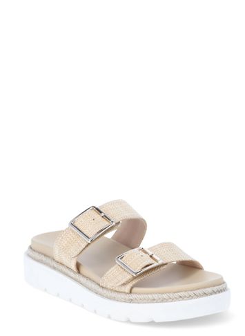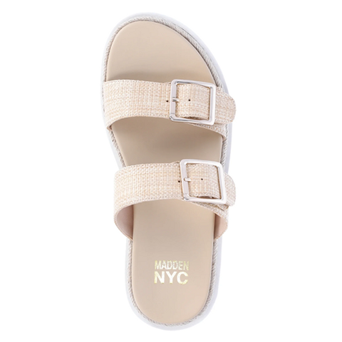 Step out in style with the Madden NYC Women's Flatform Two Strap Sandals, featuring a chic raffia upper and durable thermoplastic rubber outsole. Designed for comfort, these sandals offer adjustable buckle straps and a cushioned, contoured footbed that supports your feet all day long. The slip-on design ensures easy wear, while the medium width and flatform heel provide a balanced fit and modern look. Perfect for casual outings or summer events, these sandals combine fashion and function seamlessly.with the Madden NYC Women's Flatform Two Strap Sandals—order now to experience unmatched style and comfort!