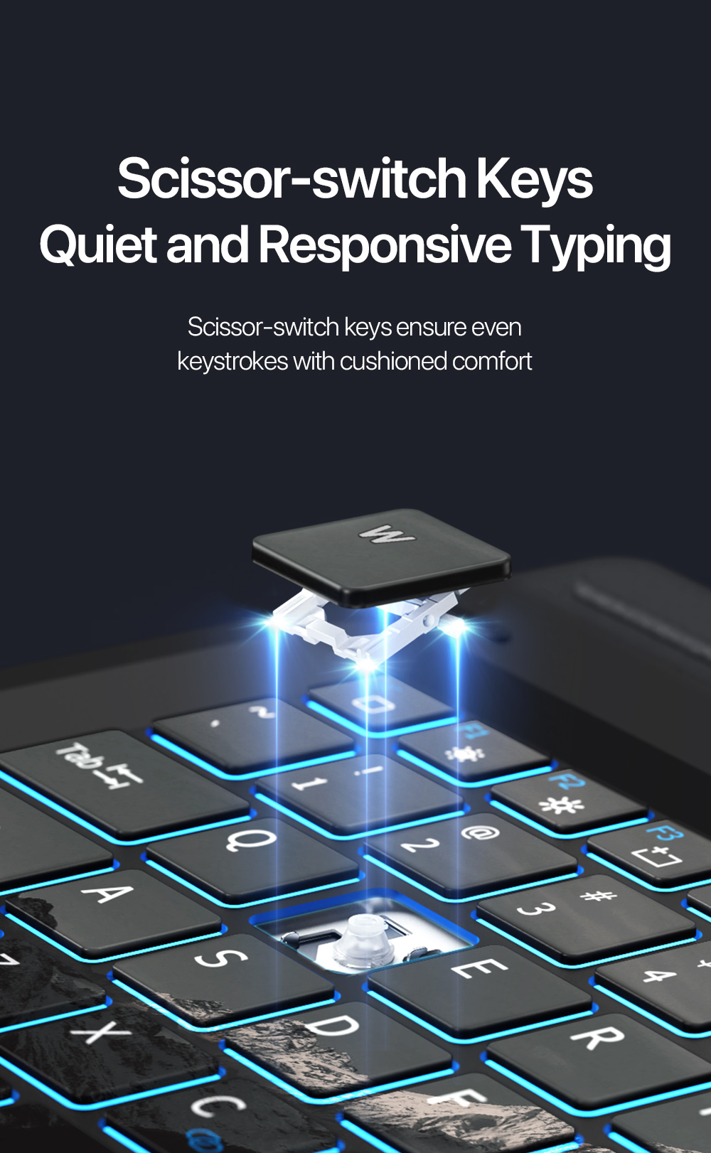 3. Scissor-switch keys provide quiet, responsive, and cushioned typing;