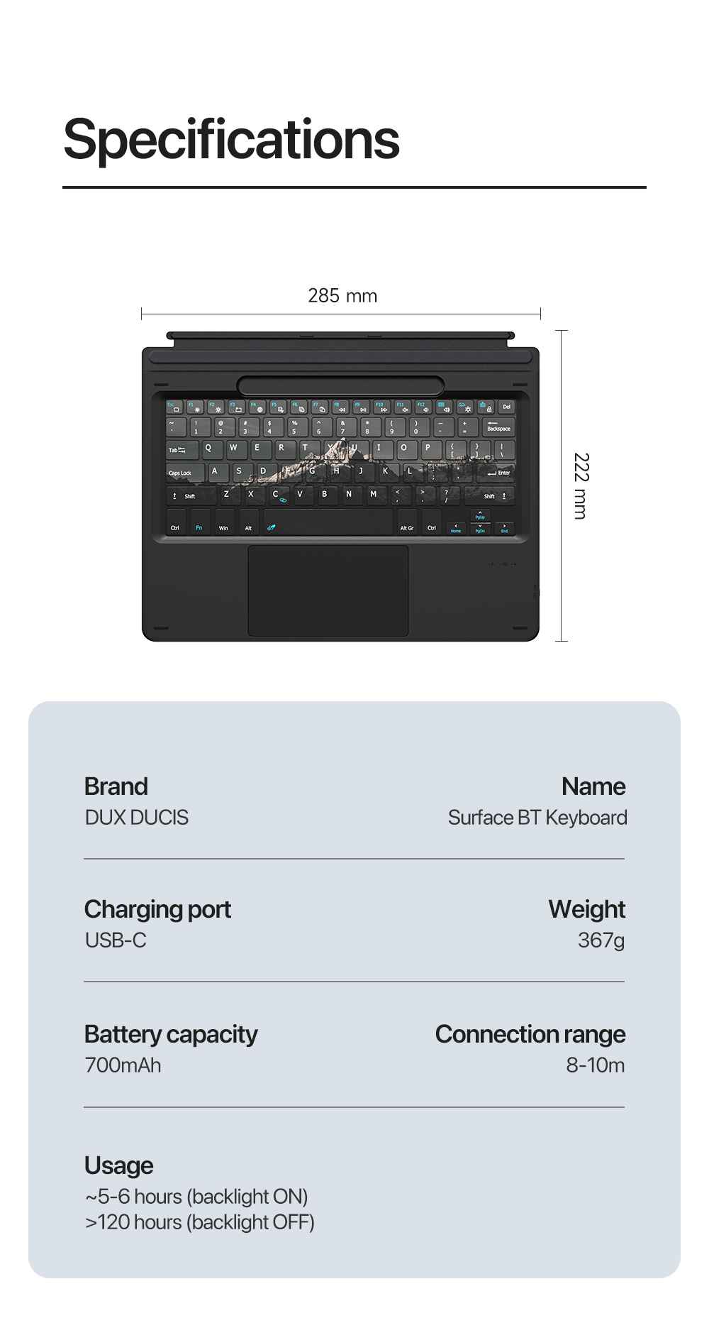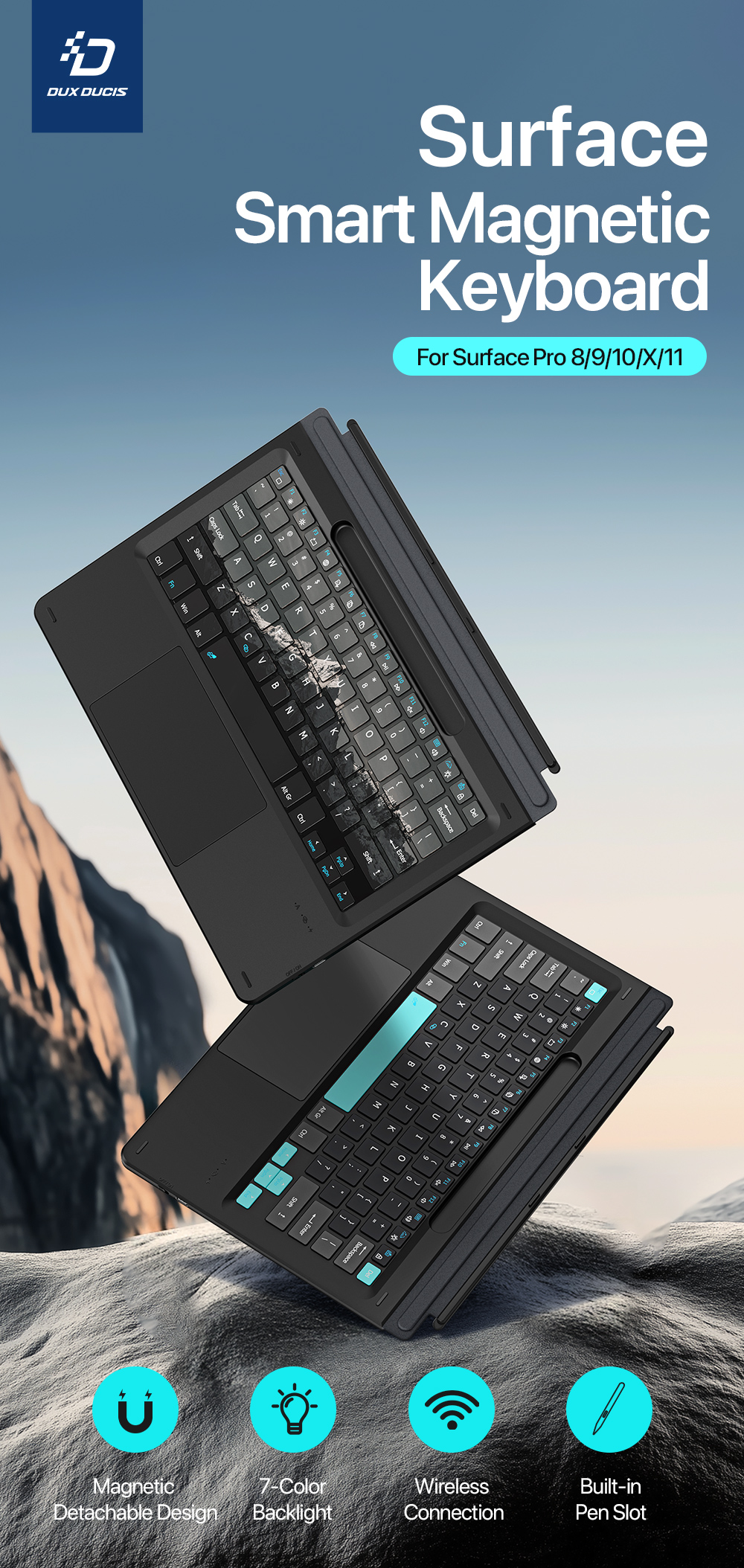 DUX DUCIS Detachable Backlit Magnetic Touch Keyboard For Surface Pro 11/10/9/8/X