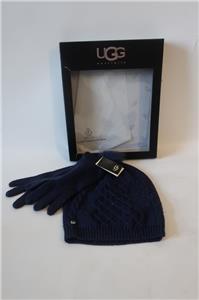 - NWT Womens Ugg Blue Metallic Peacot Wool Blend Hat and Glove Blime Gift Set OS