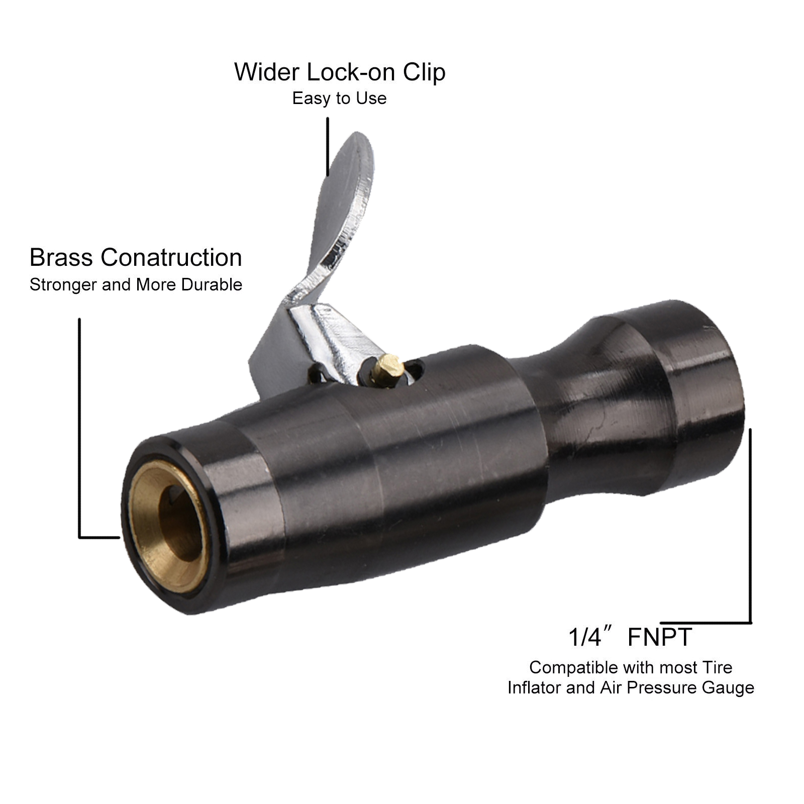With 1/4" FEMALE NPT THREADS, this air chuck is perfect for cars, motorcycles, RVs, and ATVs, making it a versatile and essential tool for all your tire inflation needs.