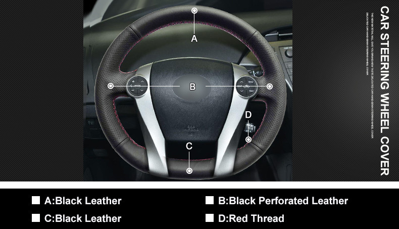 Brand New DIY TOP Black Leather Steering Wheel Hand-stitch on Wrap Cover For Toyota Prius 2009-2015