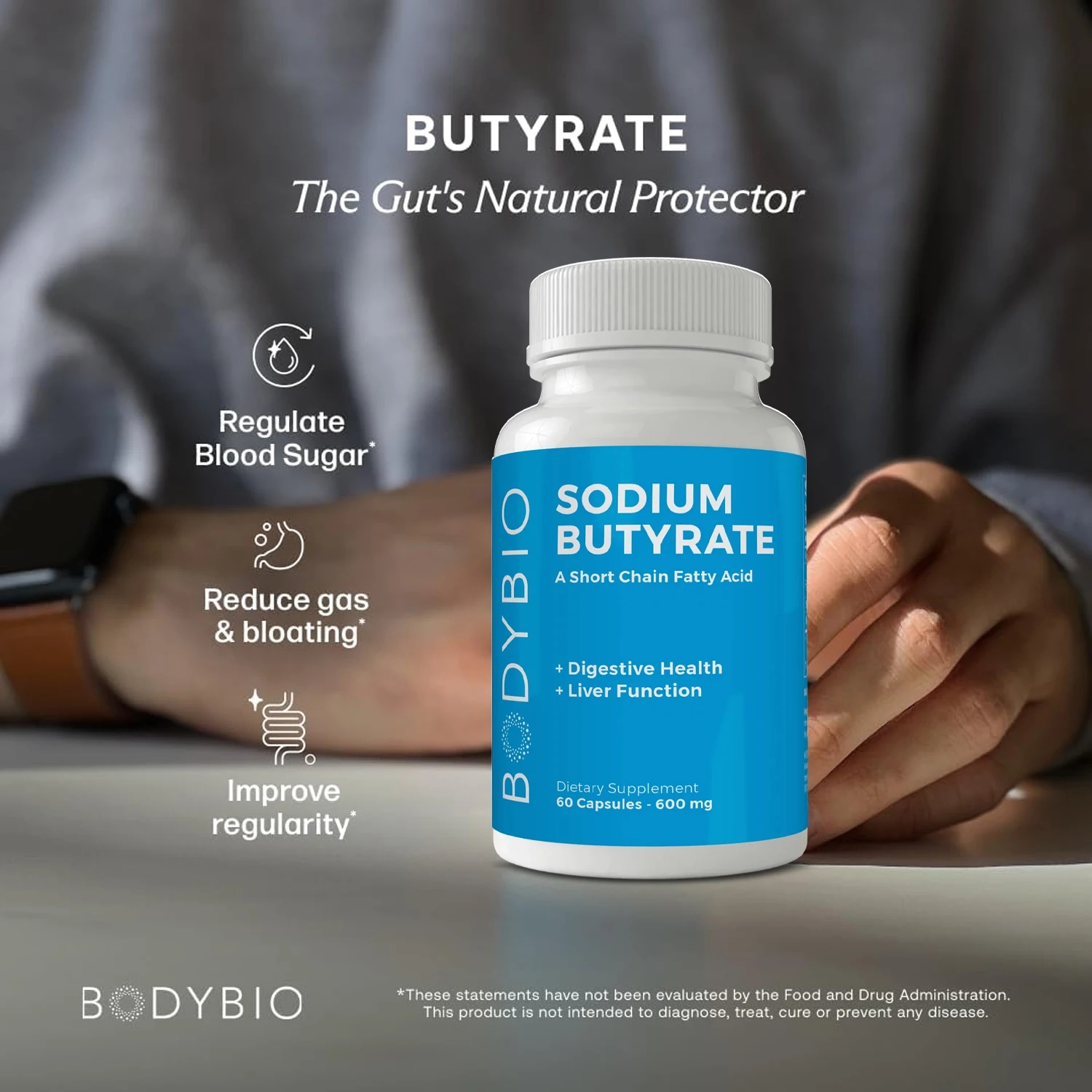 Improves Gut Health: Butyrate is a short-chain fatty acid produced in the colon. It supports the formation of beneficial bacteria, which boosts probiotics and helps promote digestive health.