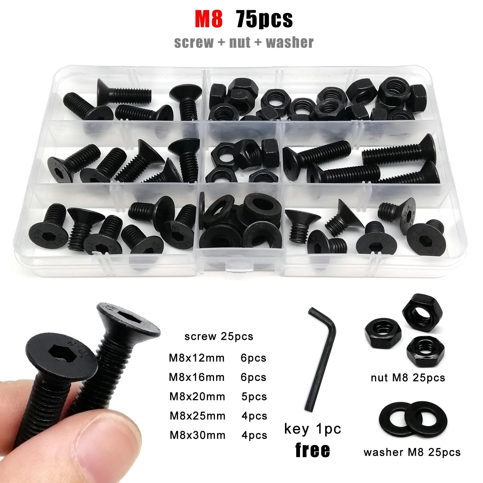M8 : total 75pcs + 1pc screw driver (free)