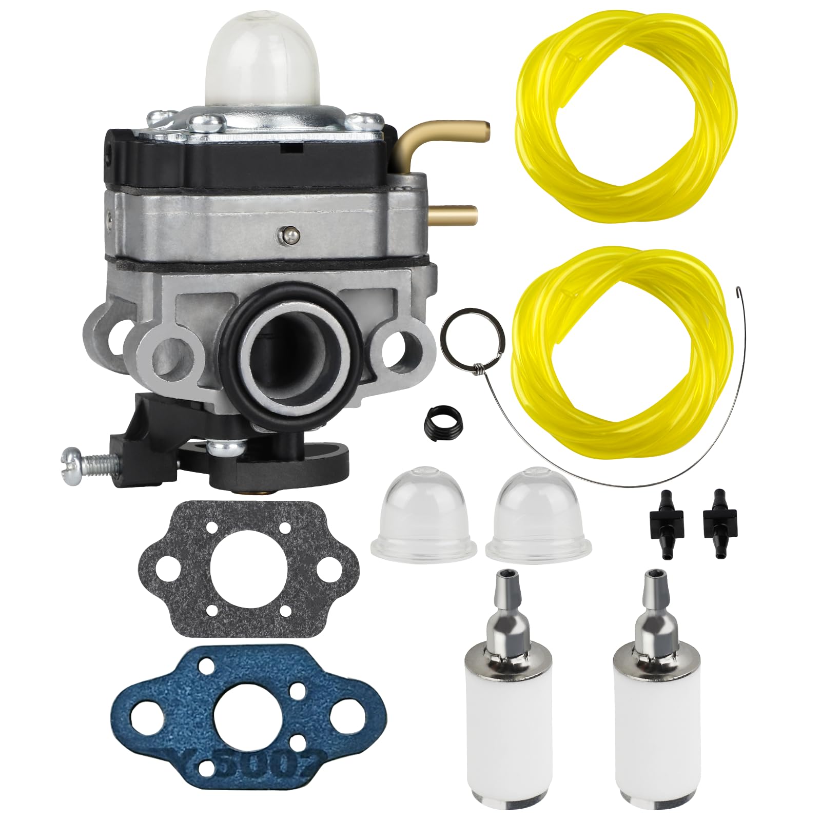 Package Included: 1 carburetor, 2 primer bulb, 2 gaskets, 2 fuel filters, 2 fuel lines, 2 fuel line joint, 1 AC04122 fuel line kit