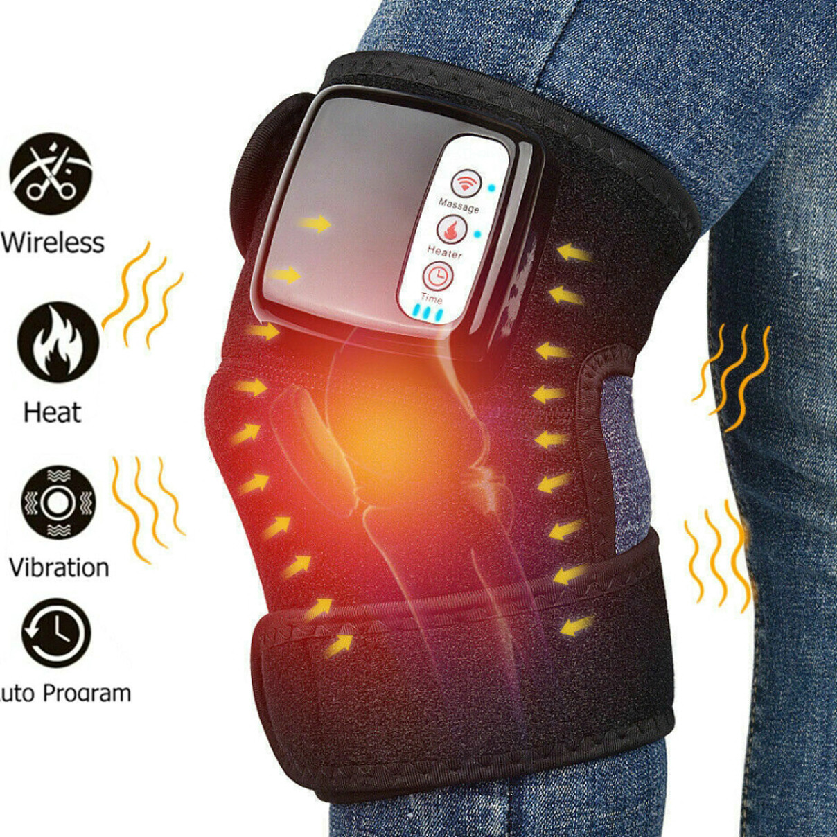 This product will help to relief knee or joint pain, accelerate blood circulation, relief muscle or joint stiffness etc. Smart temperature control at 45 to 60 degrees, no skin damage, safe to use. Wireless design, convenient to use.