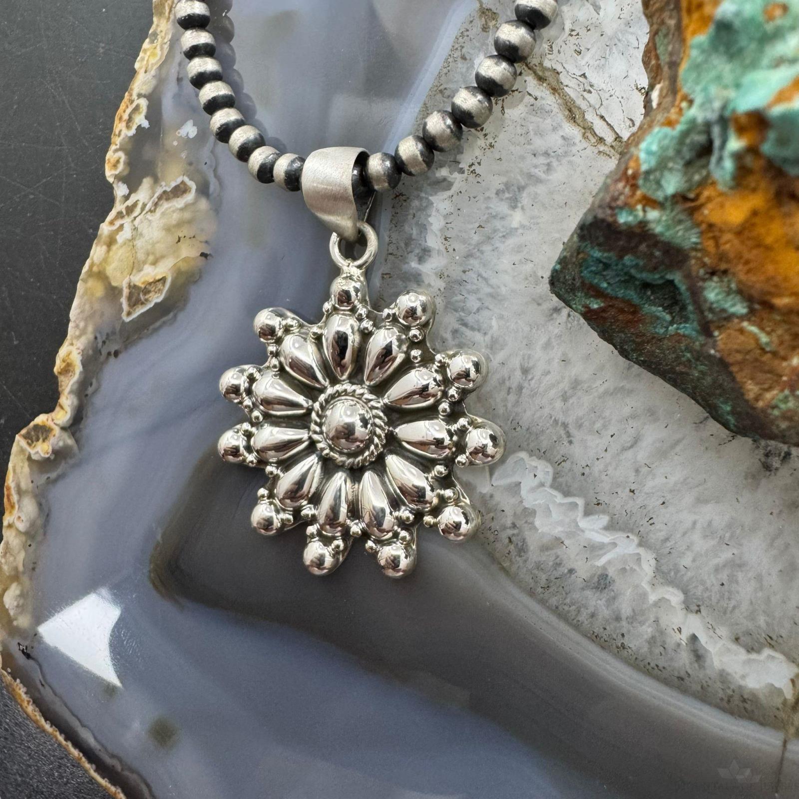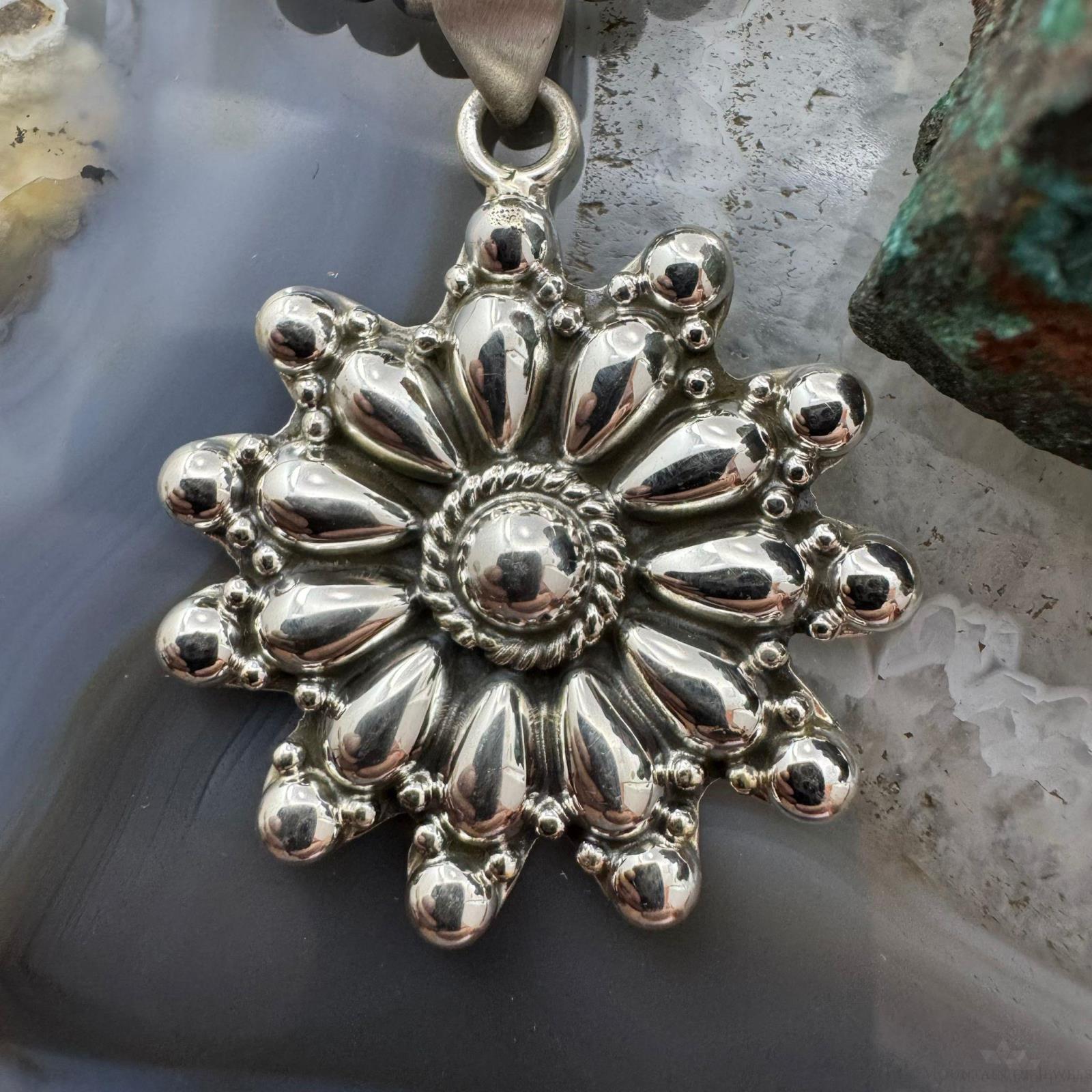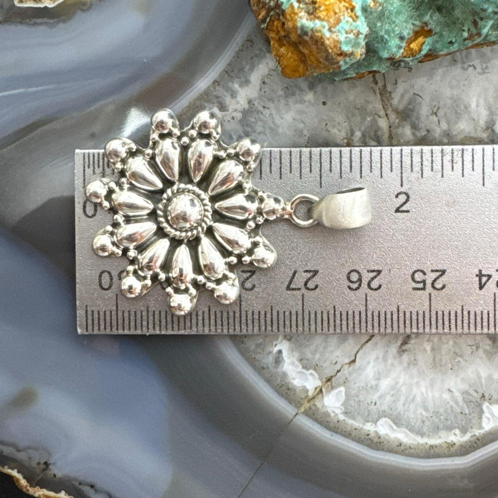 Southwestern Style Sterling Silver Decorated Cluster Floral Pendant For Women