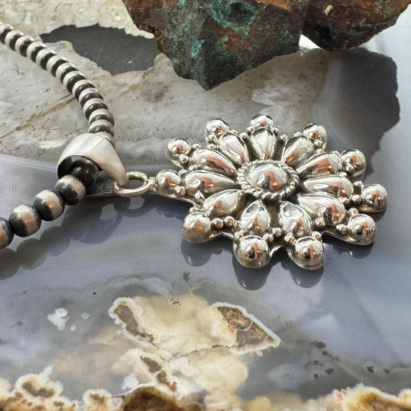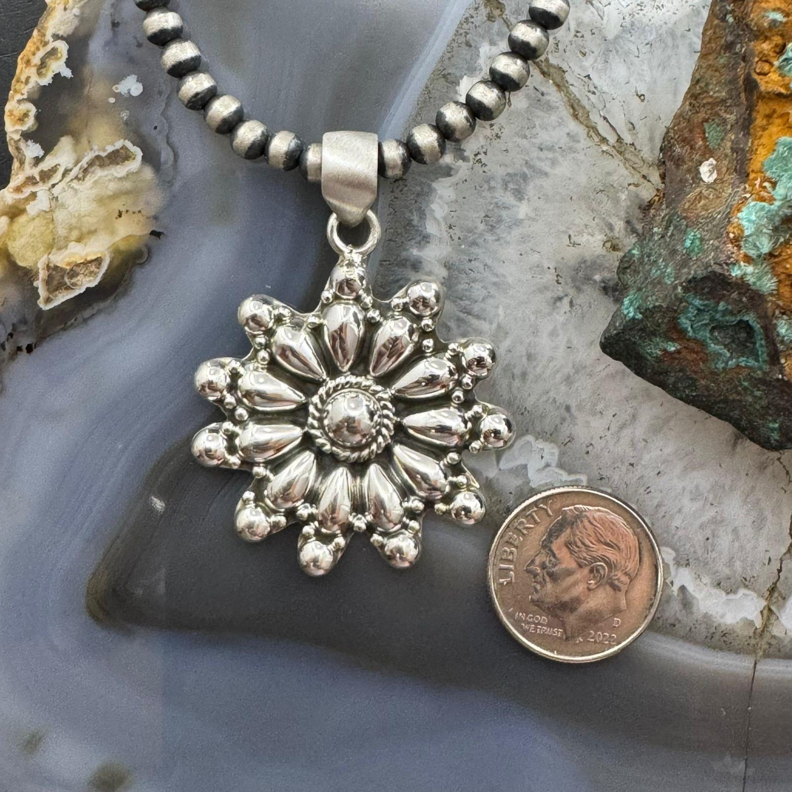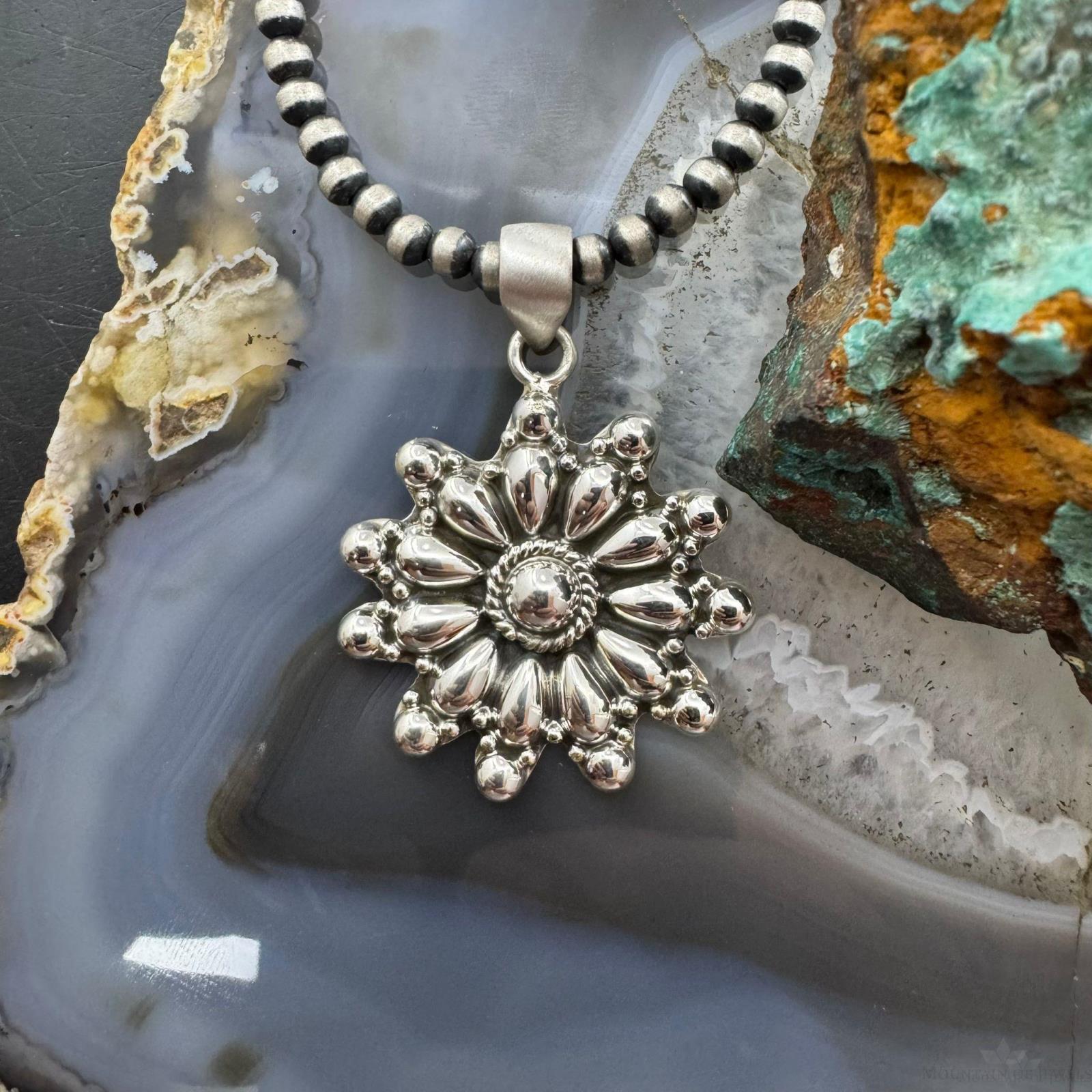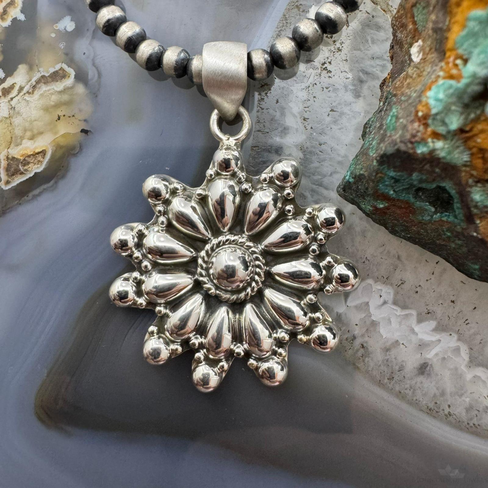 Southwestern Style Sterling Silver Decorated Cluster Floral Pendant For Women