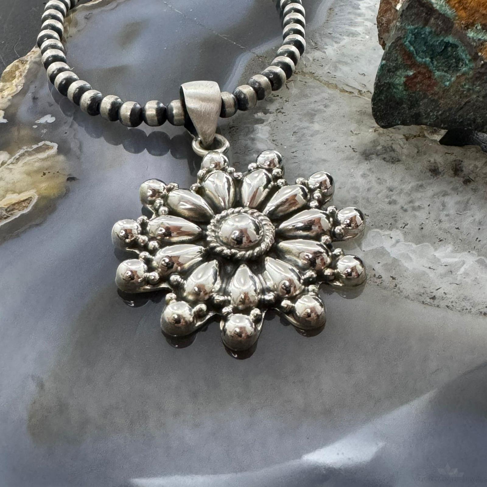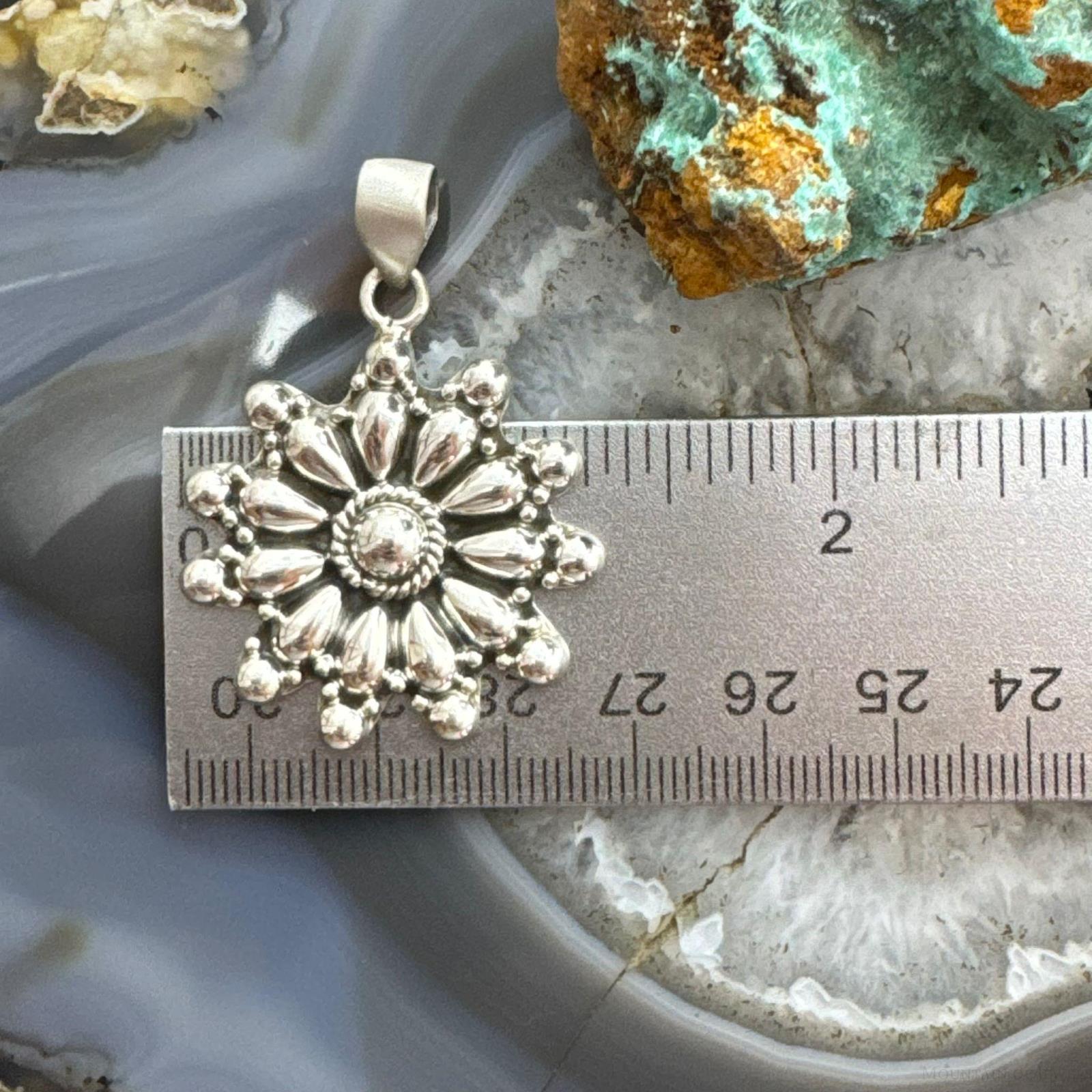 Sterling Silver Southwestern Style Decorated Cluster Floral Pendant For Women.
