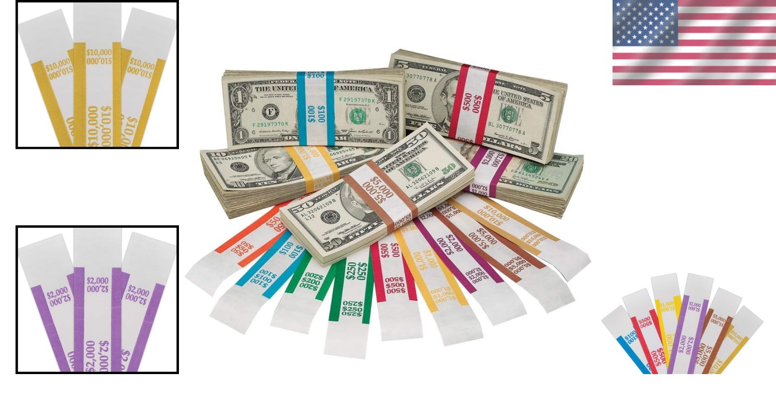 Pack includes 1000 bands each for various denominations, totaling 6000 currency bands for your convenience.