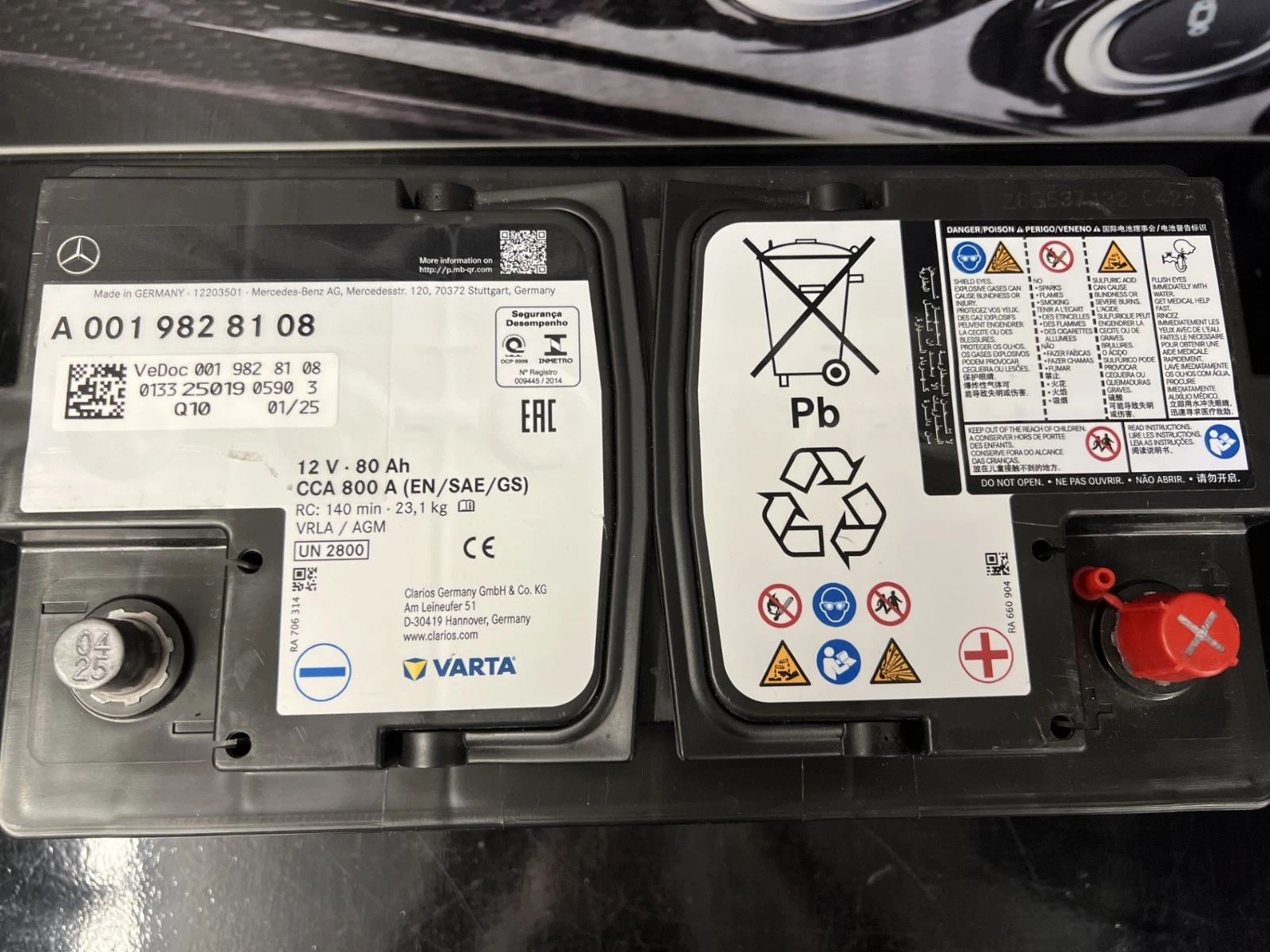 Genuine Mercedes-Benz W212 E-Class Saloon Main Car Battery 12V 80Ah A0019828108/26