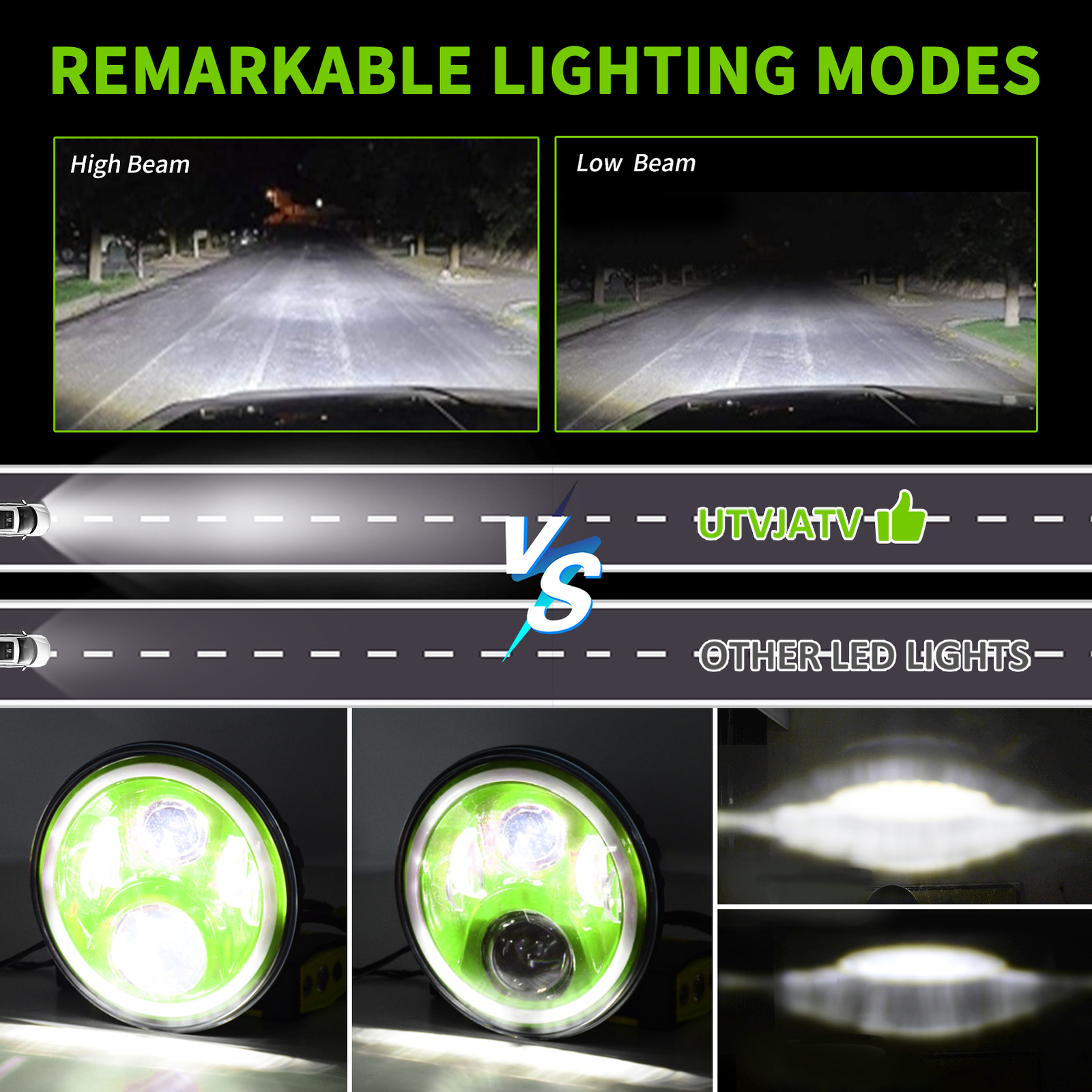 【HIGH-PERFORMANCE LED CHIP】﹣DOT Approved. Newest Fantastic Design 7" LED Headlights w/ Angel Eyes Halo are more Brighter than Original Halogen and HID. 9600 LM / Kit; Over 50000 Hours Lifespan 60W.