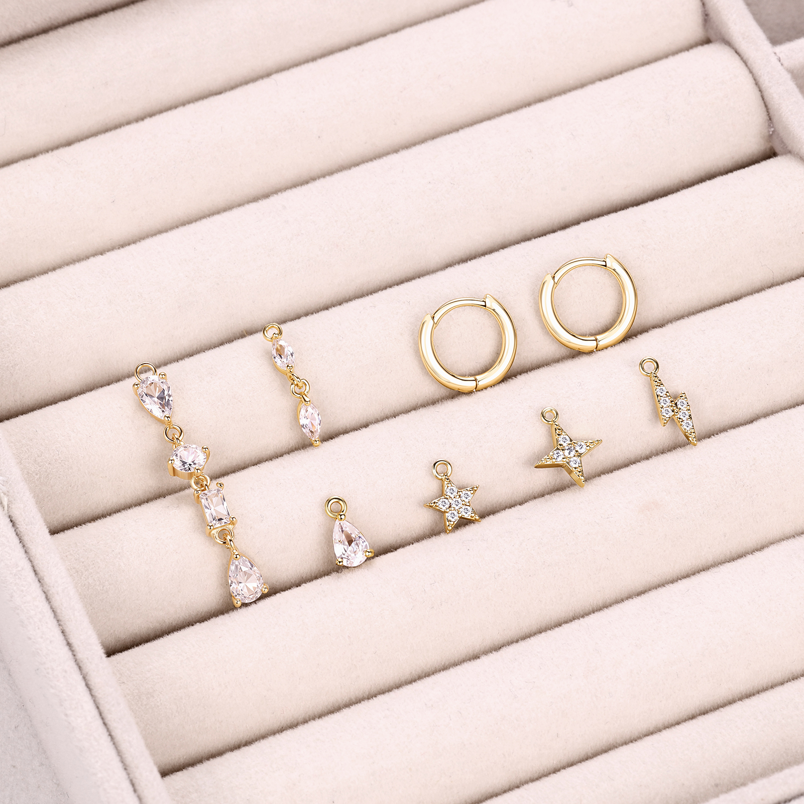 8Pcs/Set DIY Copper Pendant Gold Earrings CZ Ear Tragus Helix Piercing Jewelry
