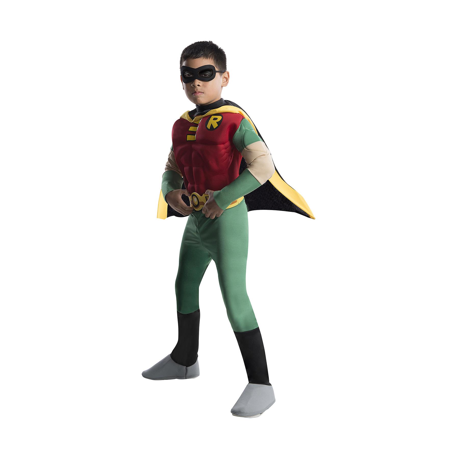 Description: Teen Titans Go! Robin Muscle Chest Costume – Kids Superhero Fancy Dress (Age 3-10)