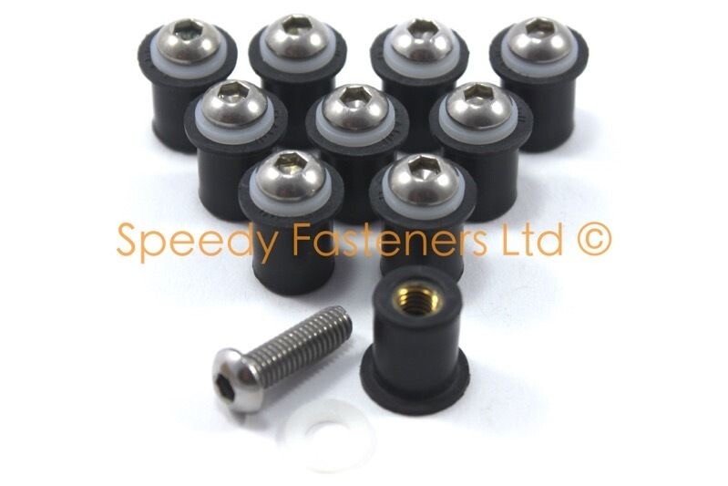 These self tapping bolts/screws attach the inner fairing panels and various other parts to the main fairings on many makes and models. These screws are stainless steel (unlike the originals) and are great at resisting rust and corrosion and stay shiny for years!